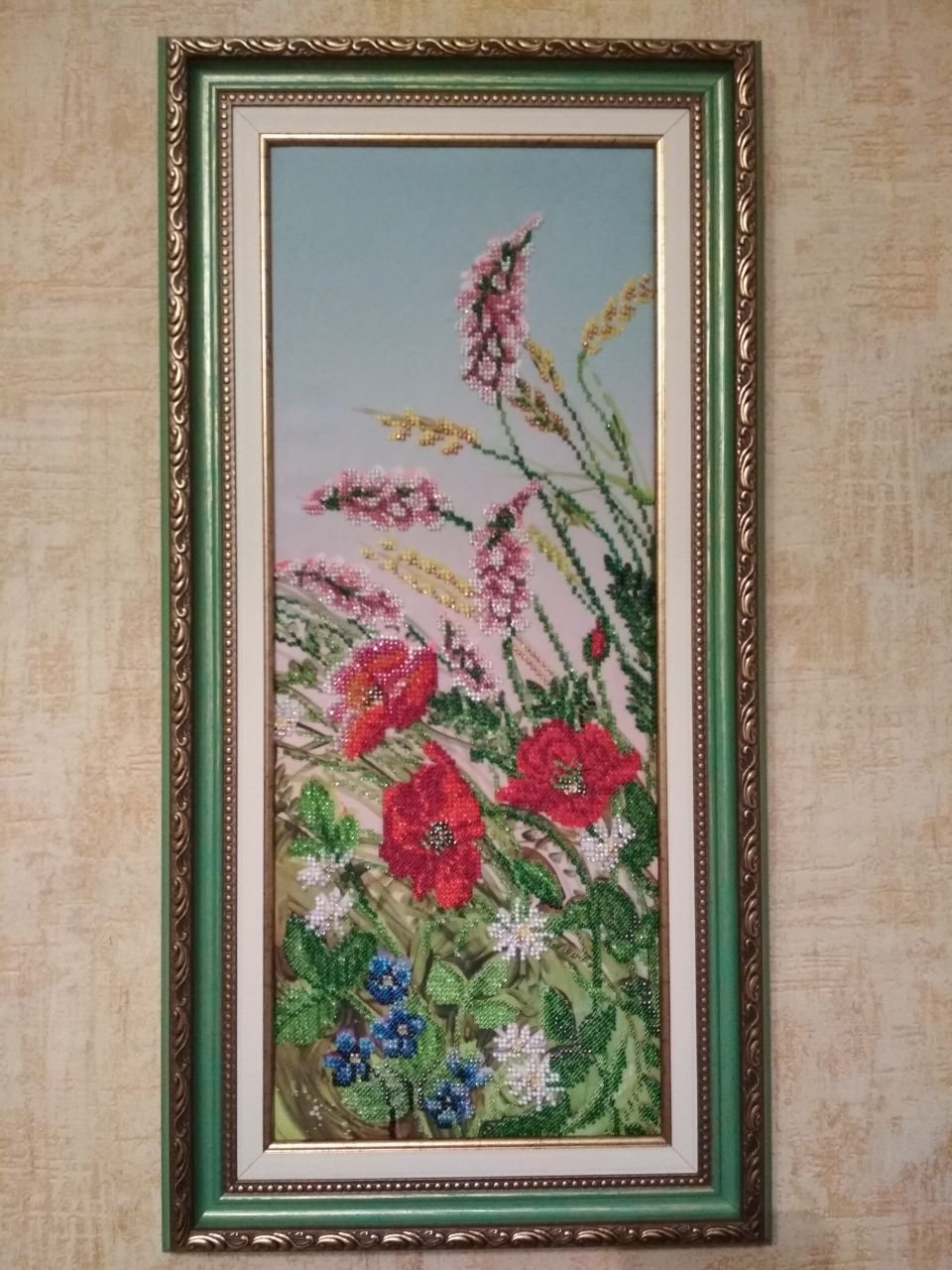 Вышивку бисером по основе тоже оформила. И ещё ..... вышила уменьшенную почти в два раза копию старинной вышивки как раз к яблочному спасу. Поэтому в багетку поехали все три работы. Все три готовы. Покажу оставшиеся обязательно))