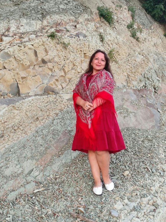 Larna _Танюша, красный цвет это каронка твоя, красное_прекрасное. А Берегиня удивила своей фиолетовостью. Очень приятный платок, как раз на лето. Получился прекрасный дуэт с платьем, как и Морская Царевна подчёркивает твою красоту!