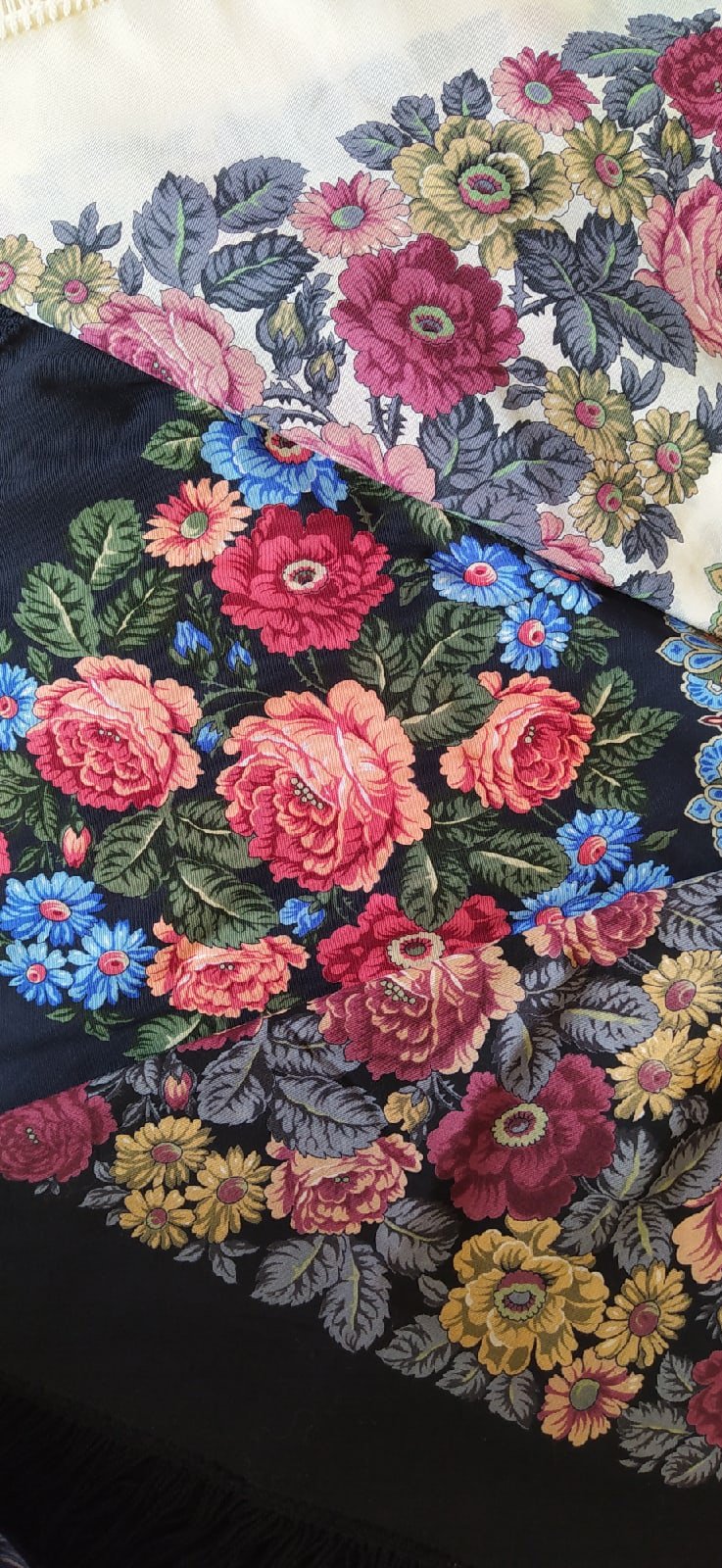 Заодно и Молодильные яблоки с Любимой увидела. Обычно рисунок на шалях исполнен тщательнее и детальнее, чем на платках. А тут он у 125-ки даже несколько тоньше. Хотя действительно очень схожи.