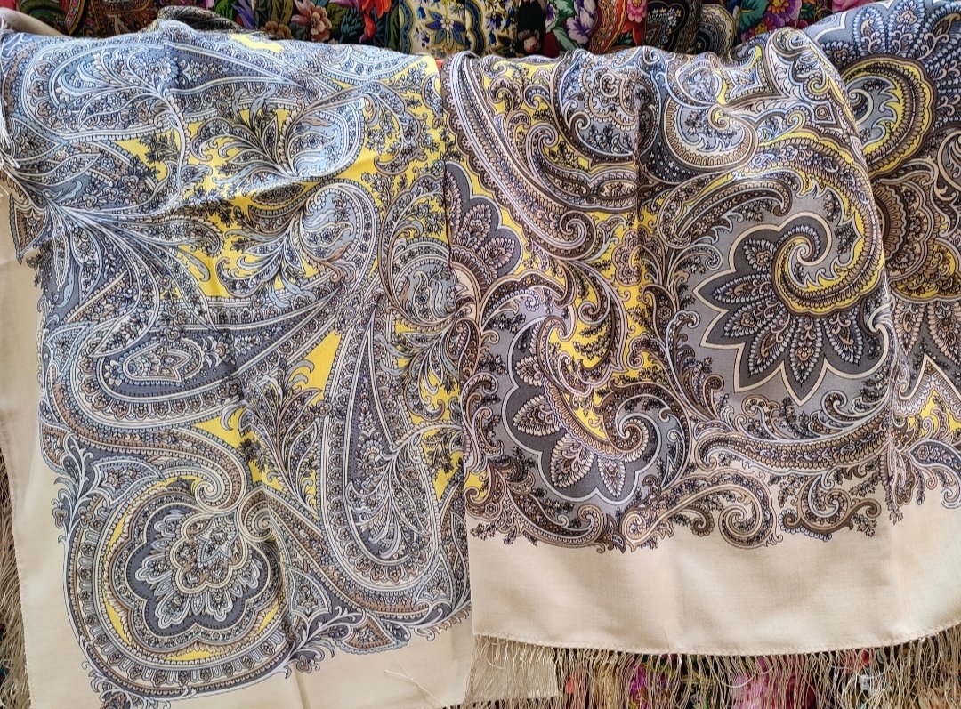 Заодно и Молодильные яблоки с Любимой увидела. Обычно рисунок на шалях исполнен тщательнее и детальнее, чем на платках. А тут он у 125-ки даже несколько тоньше. Хотя действительно очень схожи.