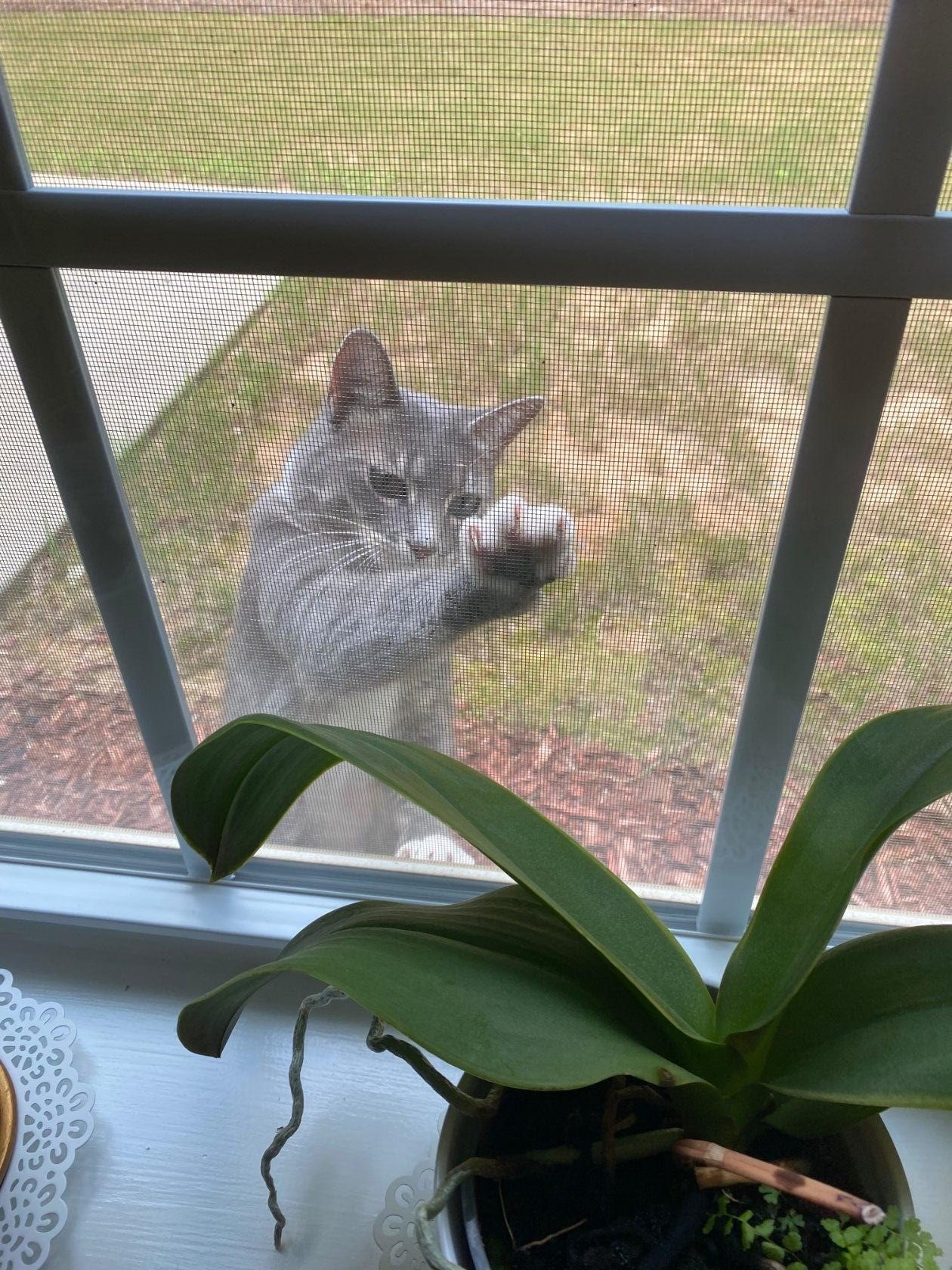 Чужой кот. Каждый день приходит к дому дочки и заглядывает в окно.