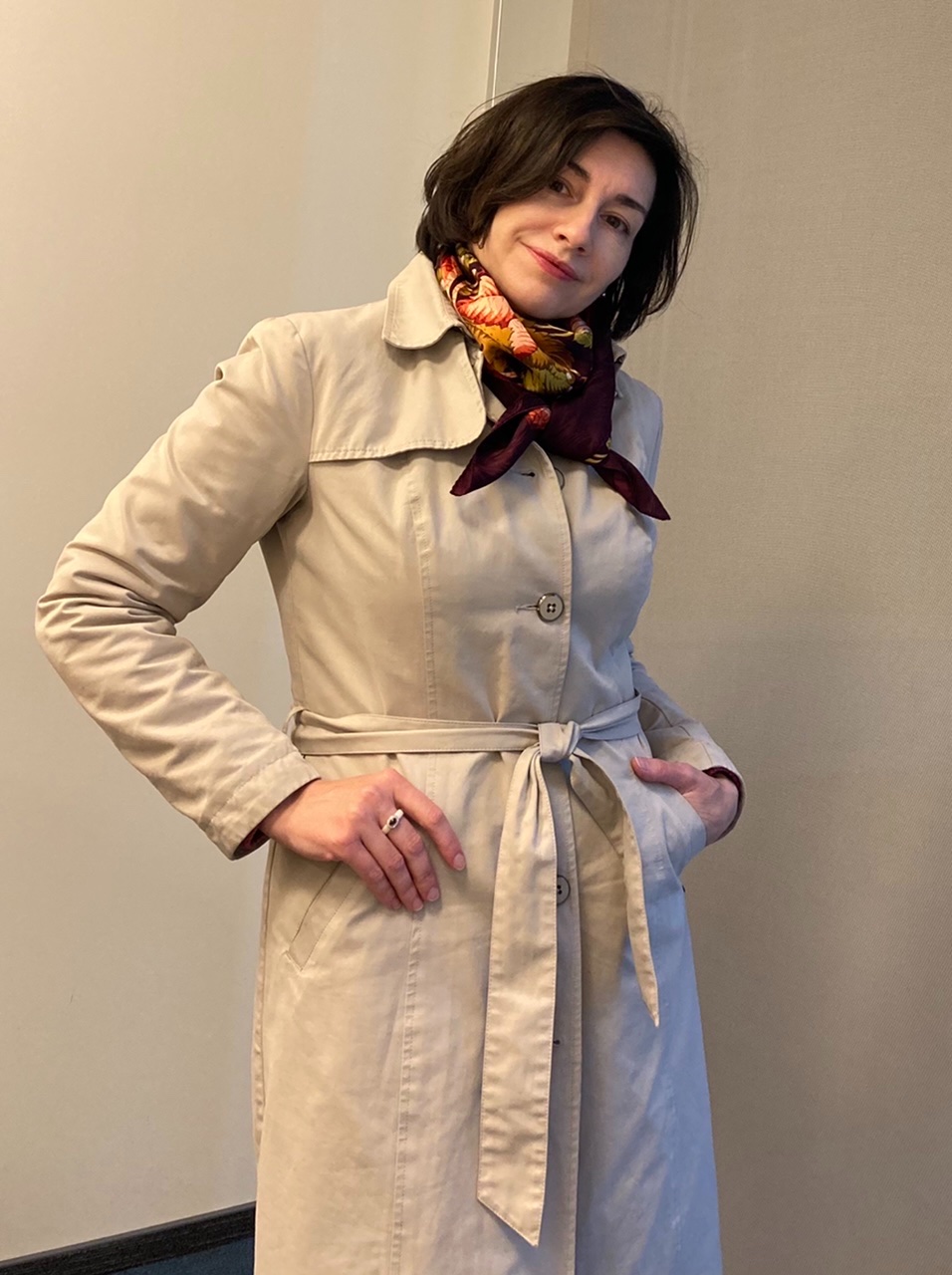Oreshka, не удивительно, что купили платок сразу. Цвет роз отлично оттенил волосы и глаза. А еще подыграл оттенку кожи.