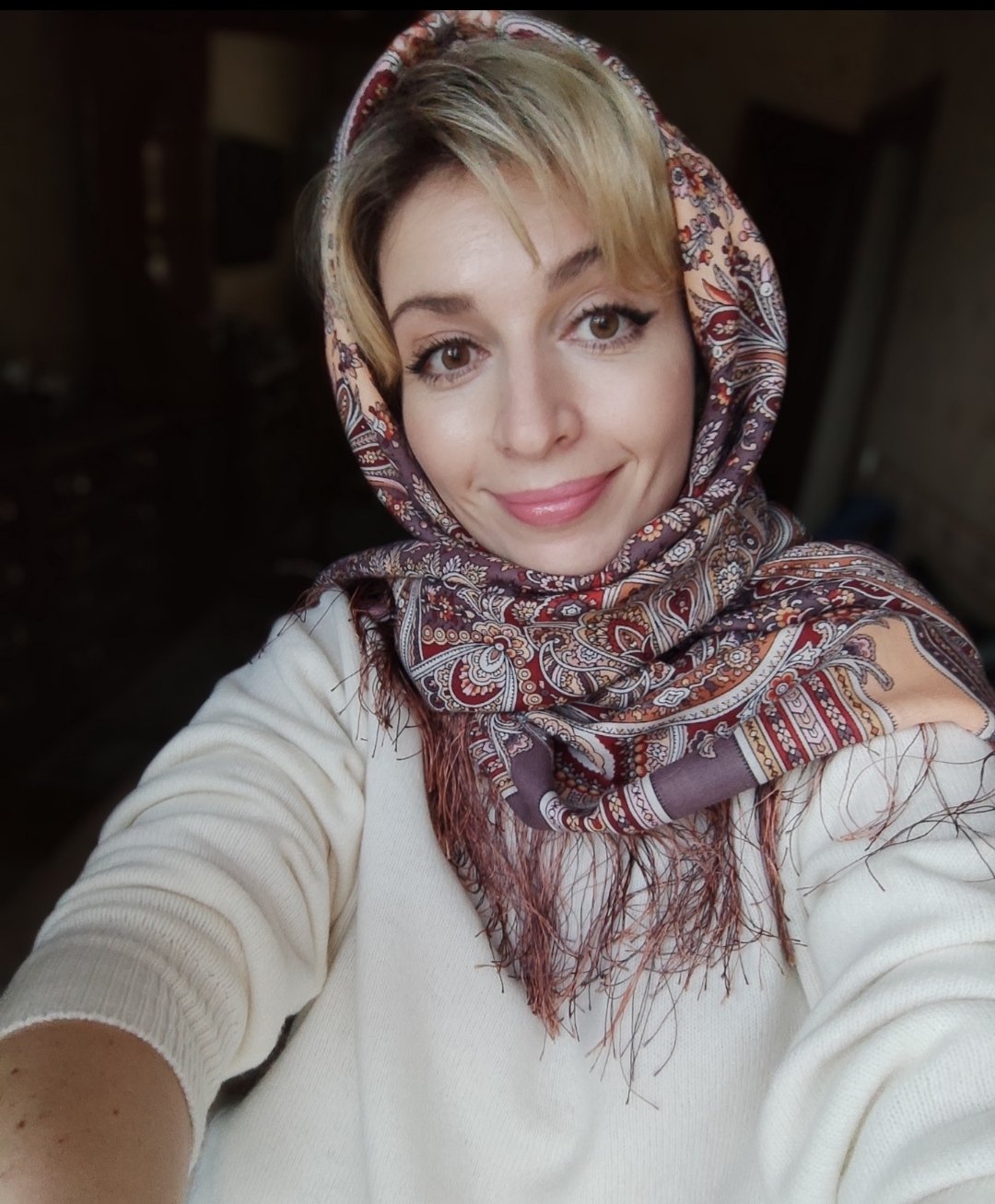 Ольга! Мне понравились все платки на Вас! Особенно со свитерами -рукавами буфами --Ммм... (Кликните, чтобы почитать оффтопик)...