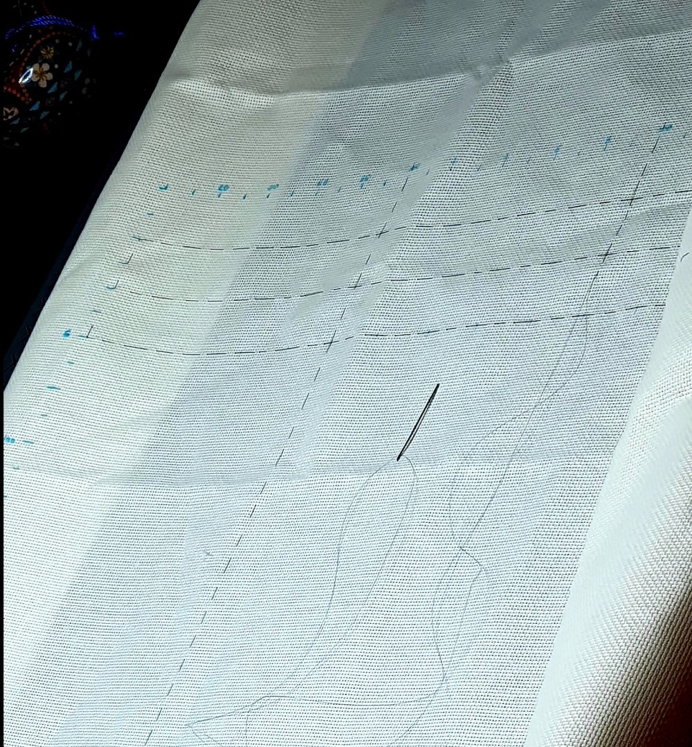 Маркером смываемым не очень нравится. Мононитью начала - ну оочень долгое дело. Без разметки сложно будет, как считаете?