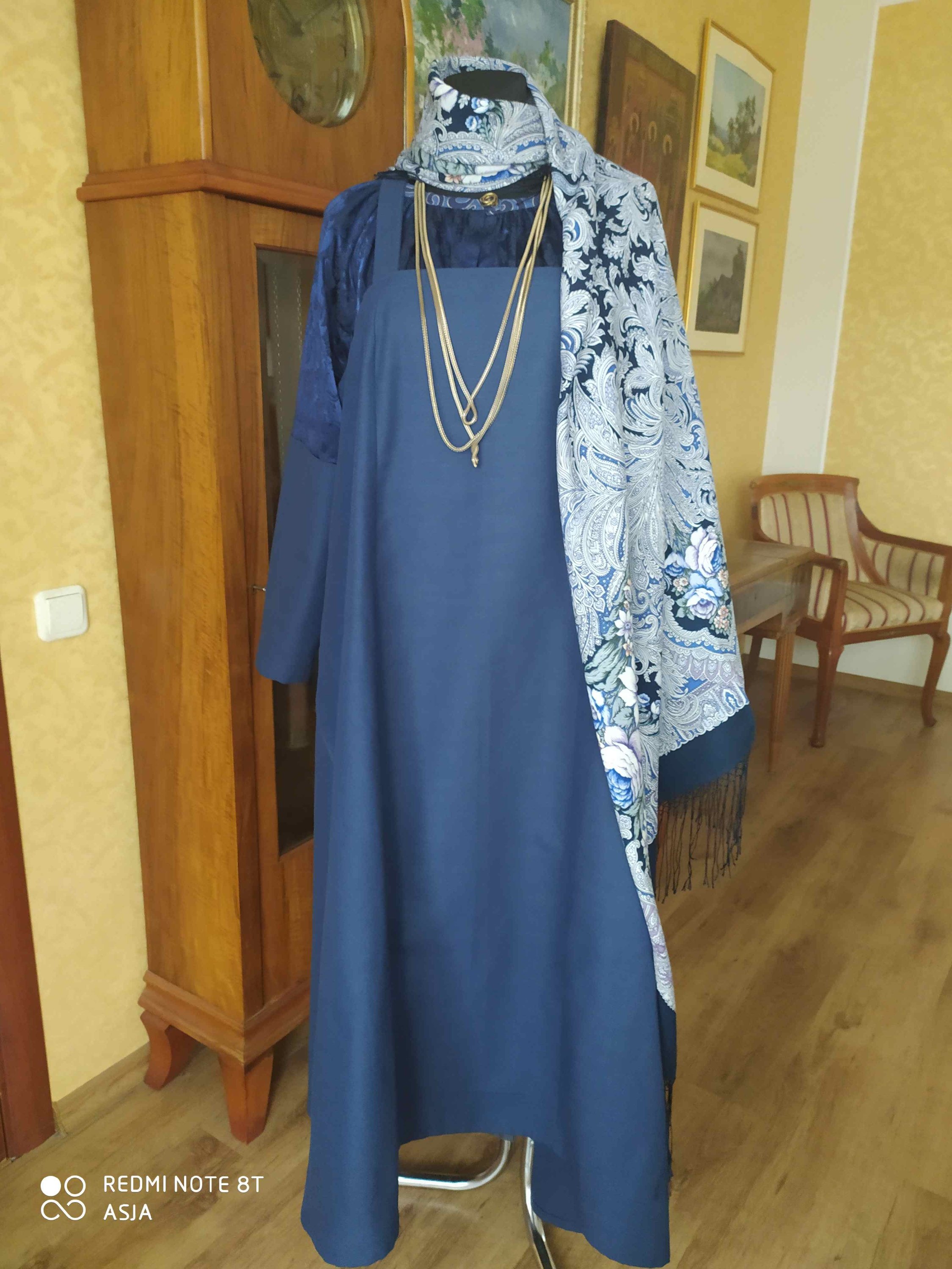 Этот же сарафан,в итоге,остался в комбинации с другой шалью. Душегрея надета только дома,дамы до нее пока не дозрели. Хотя мне кажется,что она очень повышает градус,пардон), аутентичности. Как думаете?