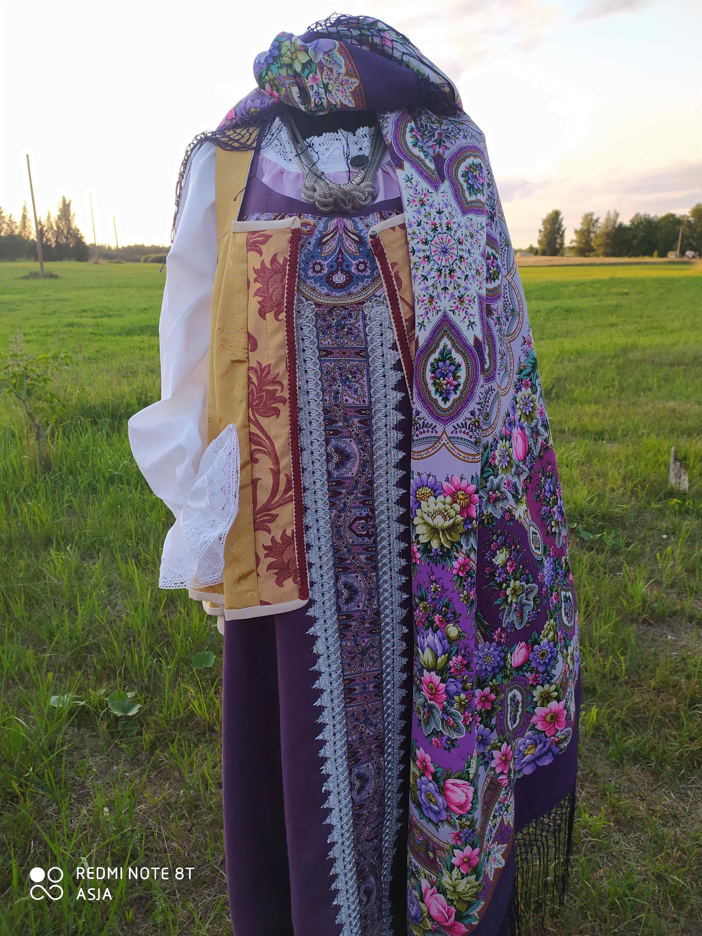 Этот же сарафан,в итоге,остался в комбинации с другой шалью. Душегрея надета только дома,дамы до нее пока не дозрели. Хотя мне кажется,что она очень повышает градус,пардон), аутентичности. Как думаете?