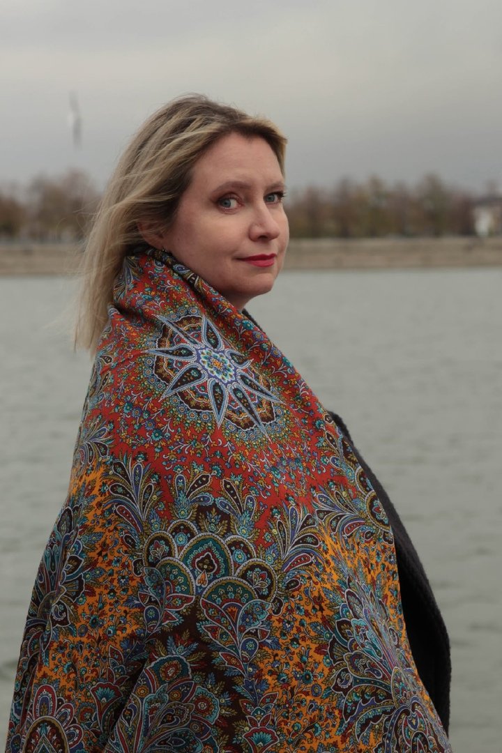 Может кто- нибудь продемонстрировать на себе платок Колдовская ночь 15, а то трудности с выбором, мне кажется что он слишком светлый и какой- то смазанный, т .е не выделяется достаточно рисунок, нет контраста, но колорит в общем привлекает, буду благодарна.