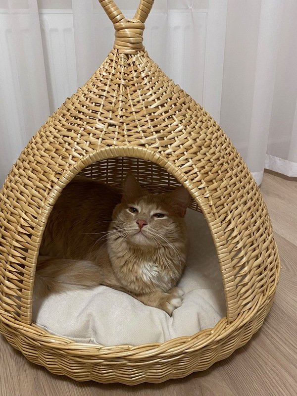 Йосе скоро год. Подарки собрал заранее--новый домик ручной работы. Видно, что понравился ему.Чуть что --прячется сразу.
