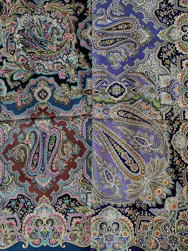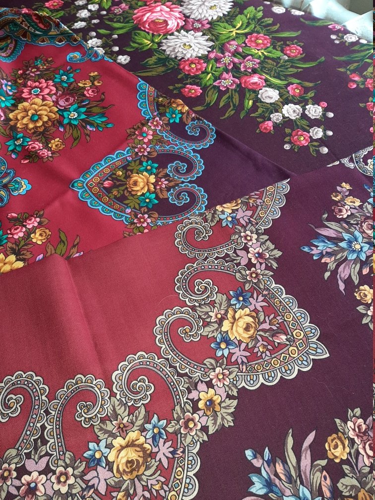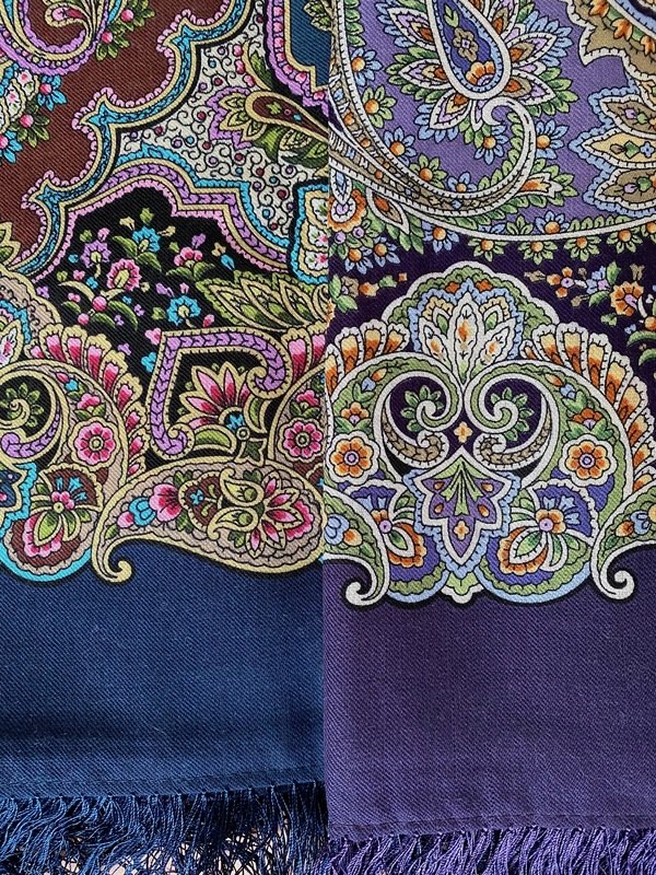 Хотелось показать шали более сдержанно, без накрутки яркости. Рисунок-то, в общем, простой - букеты, устремленные к центру. Вся фишка в эффекте "лунного света". Тонкий момент.