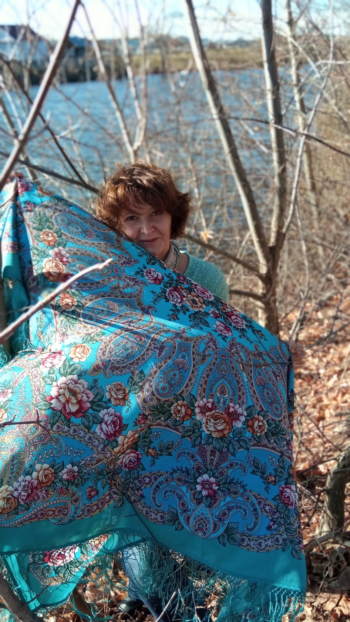Платок шерстяной с шелковой бахромой "Царевна лягушка", вид 2, 146x146 см