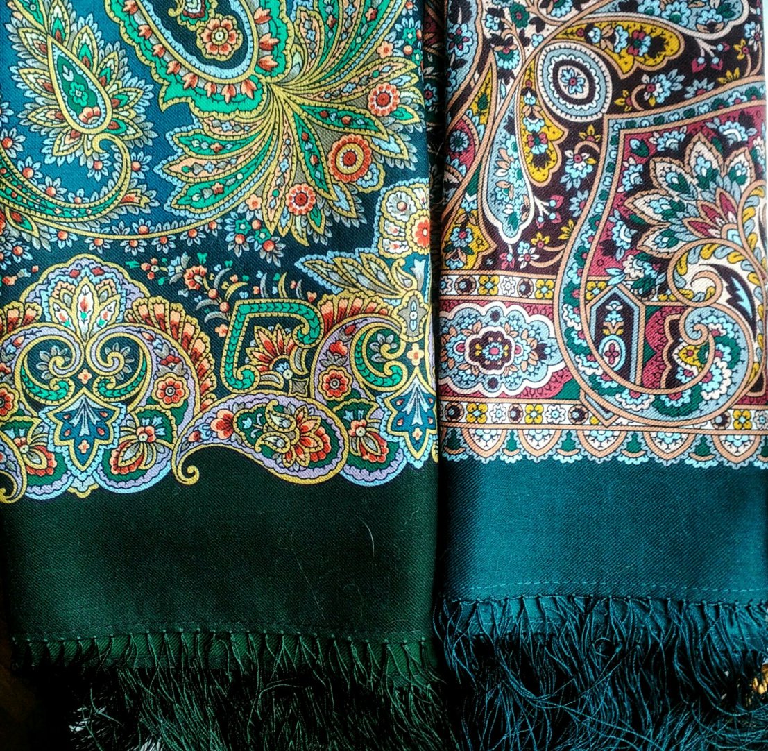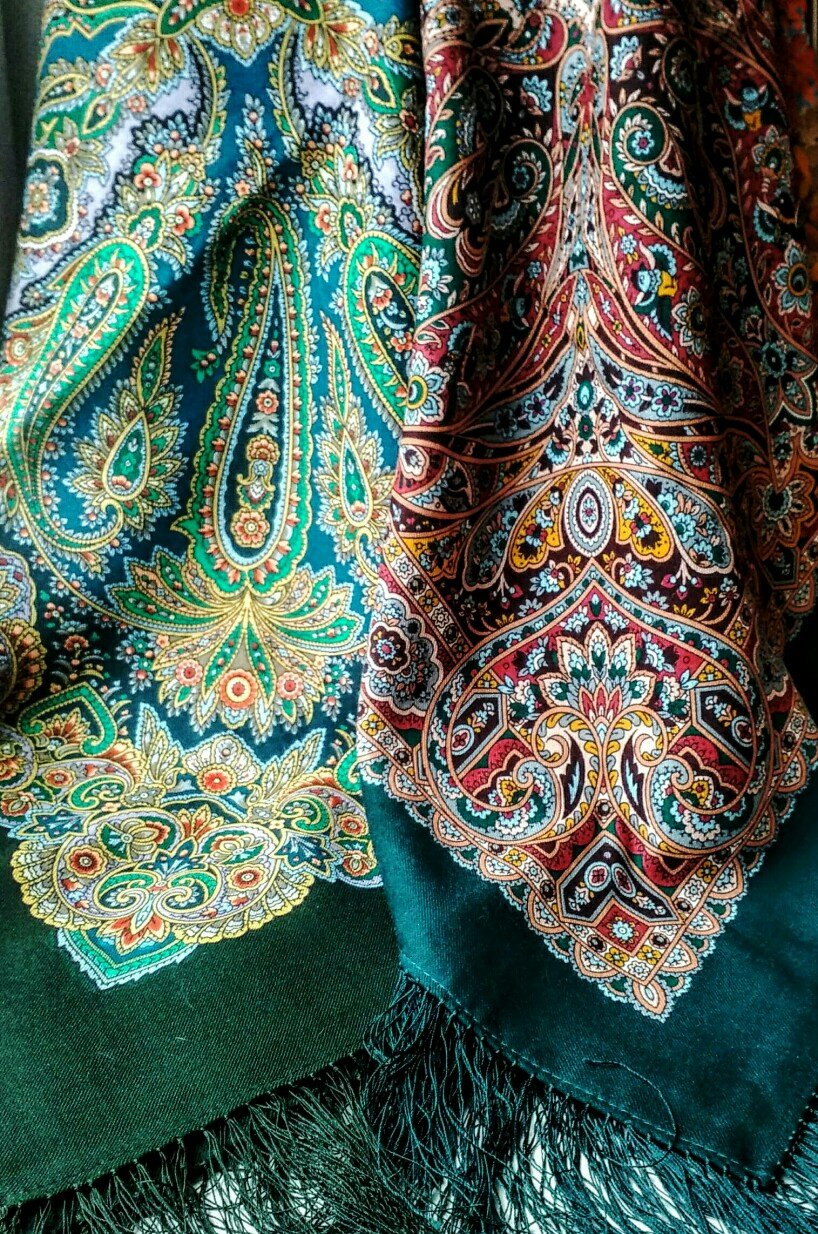 А я решила сравнить два зелёных орнаментальных разномасштабных платка