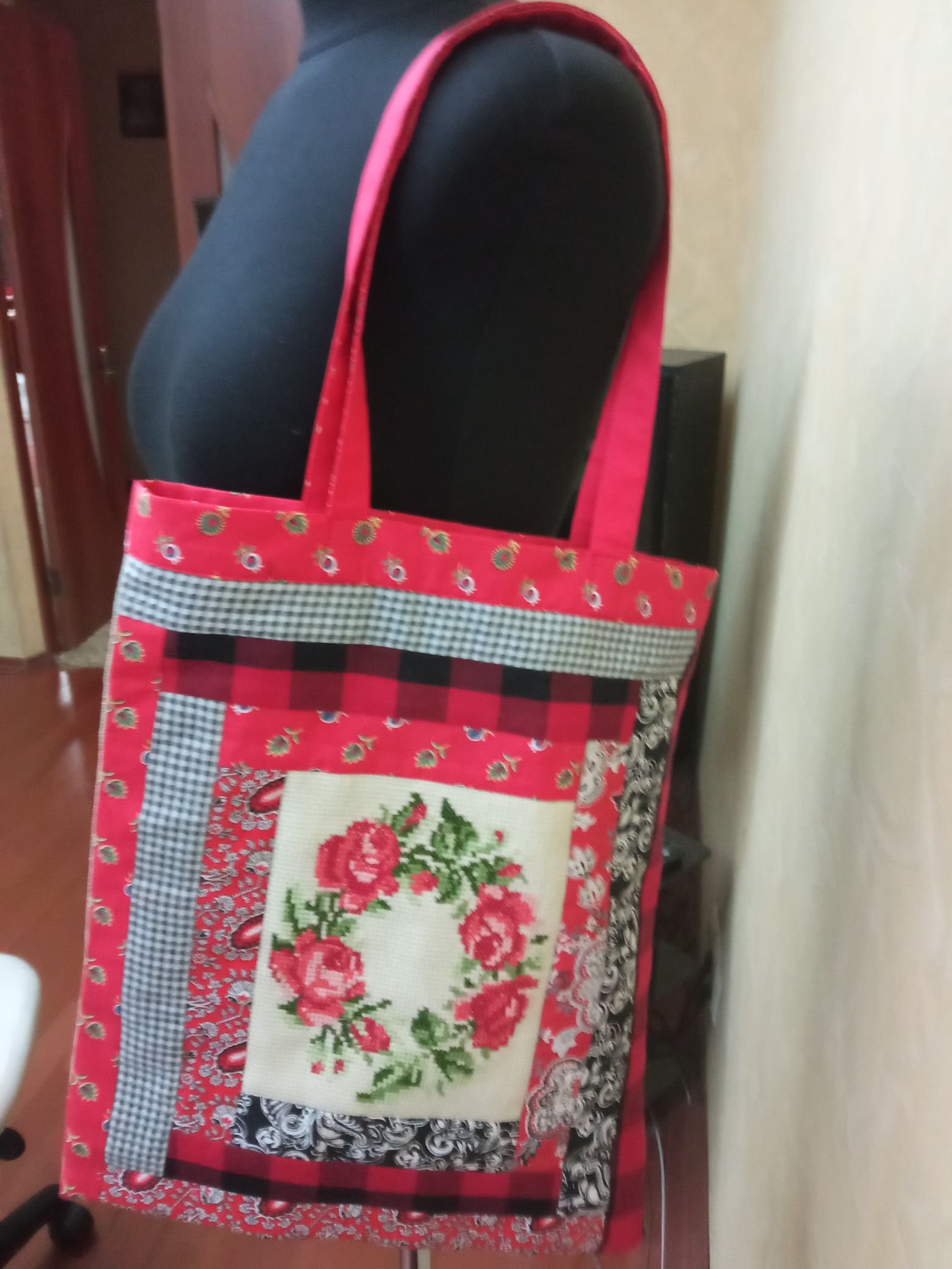 Внезапно сшился лоскутный шопер. С вышивкой по центру. По мотивам прошлогоднего платья.