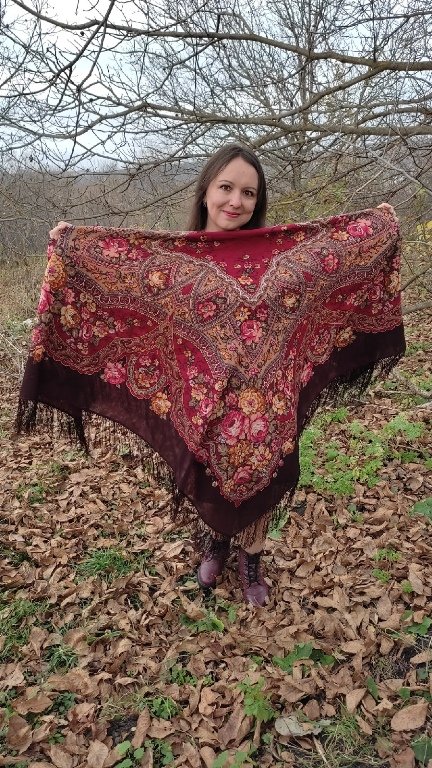 Галlина Благодарю! Как открыла посылку, сначала была несколько смущена темными цветами, но на деле платочек оказался не темным, а скорее золотым, а рисунок вызывает у меня самые теплые чувства.