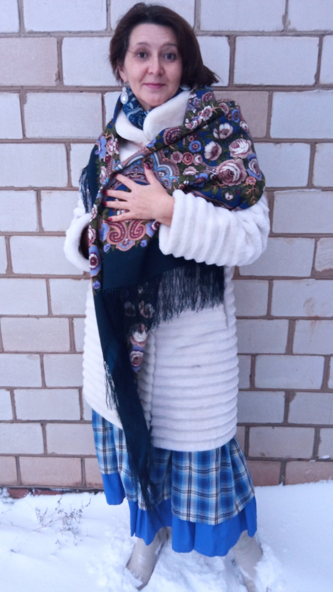 Нина Александровна, Посадский своим спокойствием дает необходимую передышку перед яркими рождественскими праздниками. Голубой на шали вторит небу, оно сейчас местами светлое еще бывает. Удачная погода этой осенью.