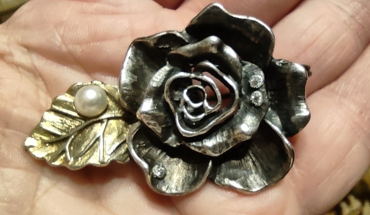 Брошь хамелеон. Когда-то у него был длинный язык и он им за всё цеплялся. Его откусили. 😊