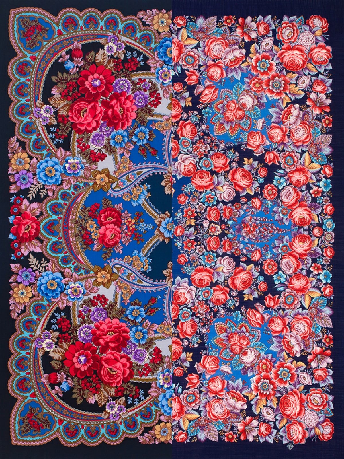 Сравнение новинки Переплетение судеб вид 2 с шалью Лето 2 и платками Именины сердца 3 и Шиповник 2.