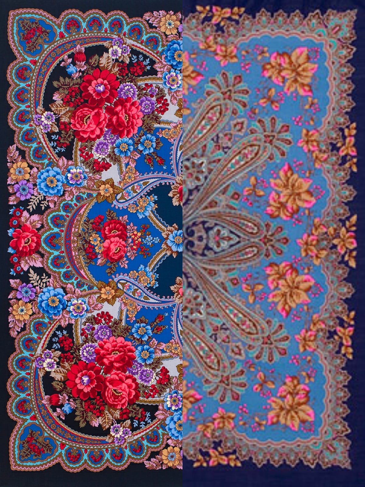 Не нашла фото в нормальном разрешении, с сайта убрали этот артикул, а сравнение очень интересное получилось - кокошники уменьшены до орнамента, огурцы растянуты и вместо роз прекрасный виноград