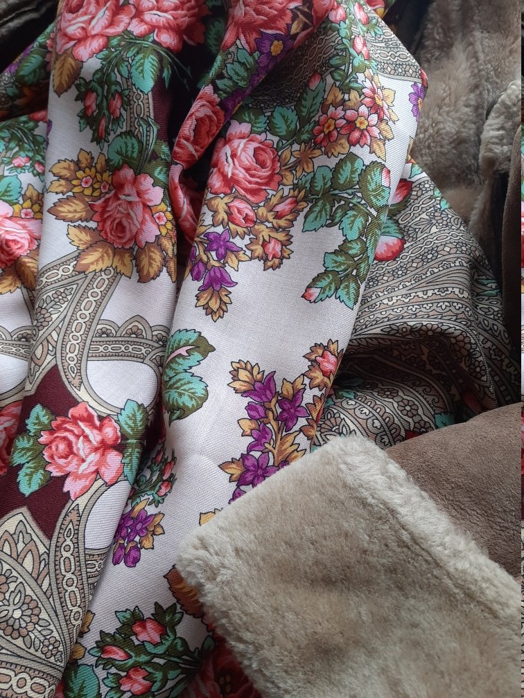 А я с 6-м "Чаиром". На нем бежевый с розовинкой, без желтизны. Пойдет многим. Очень нежная шаль, к ней, наверное, можно подобрать много цветочных духов, она живая. Очень ее украшают не только розы, но и мелкие цветочки, листочки, веточки.