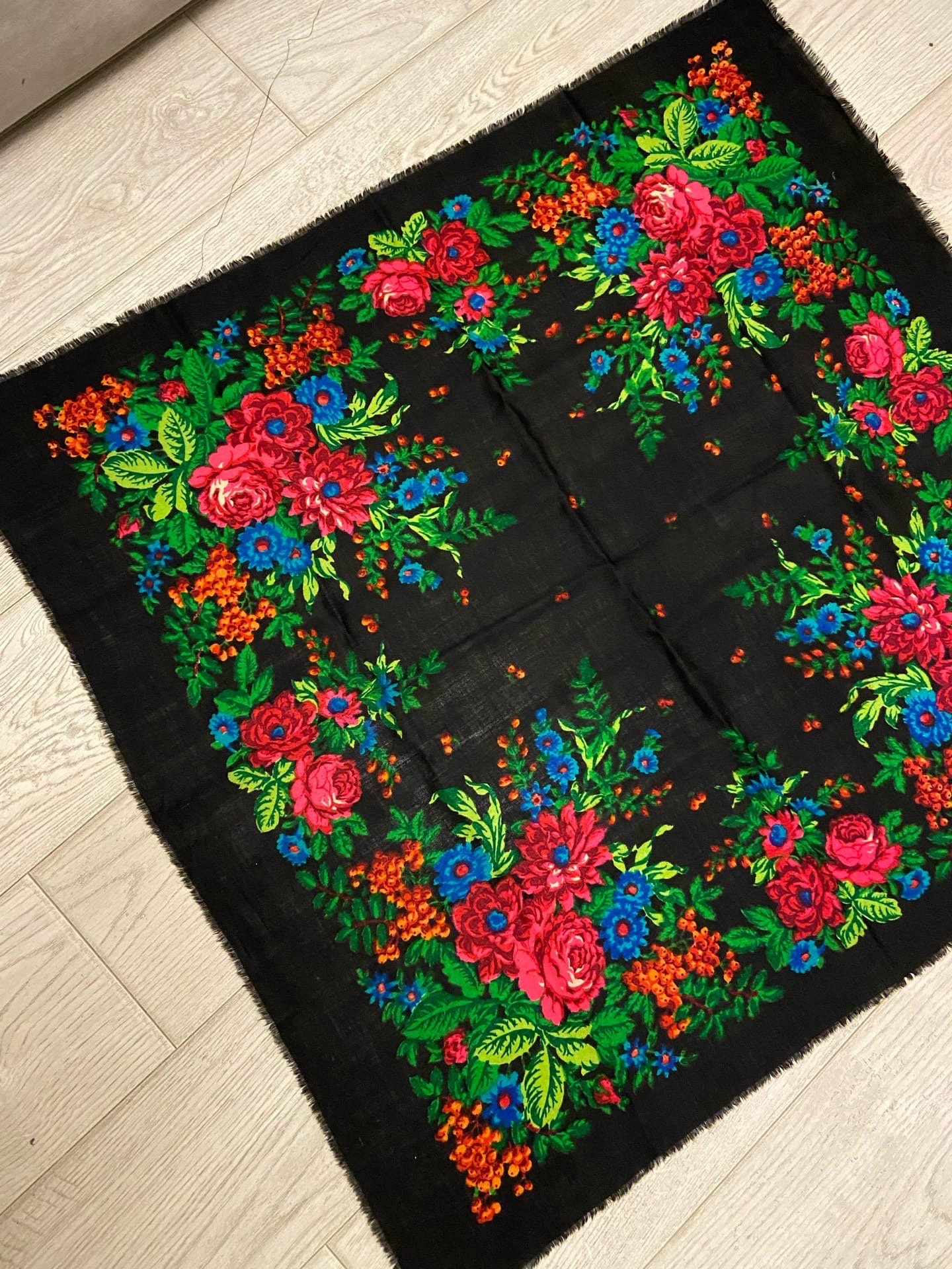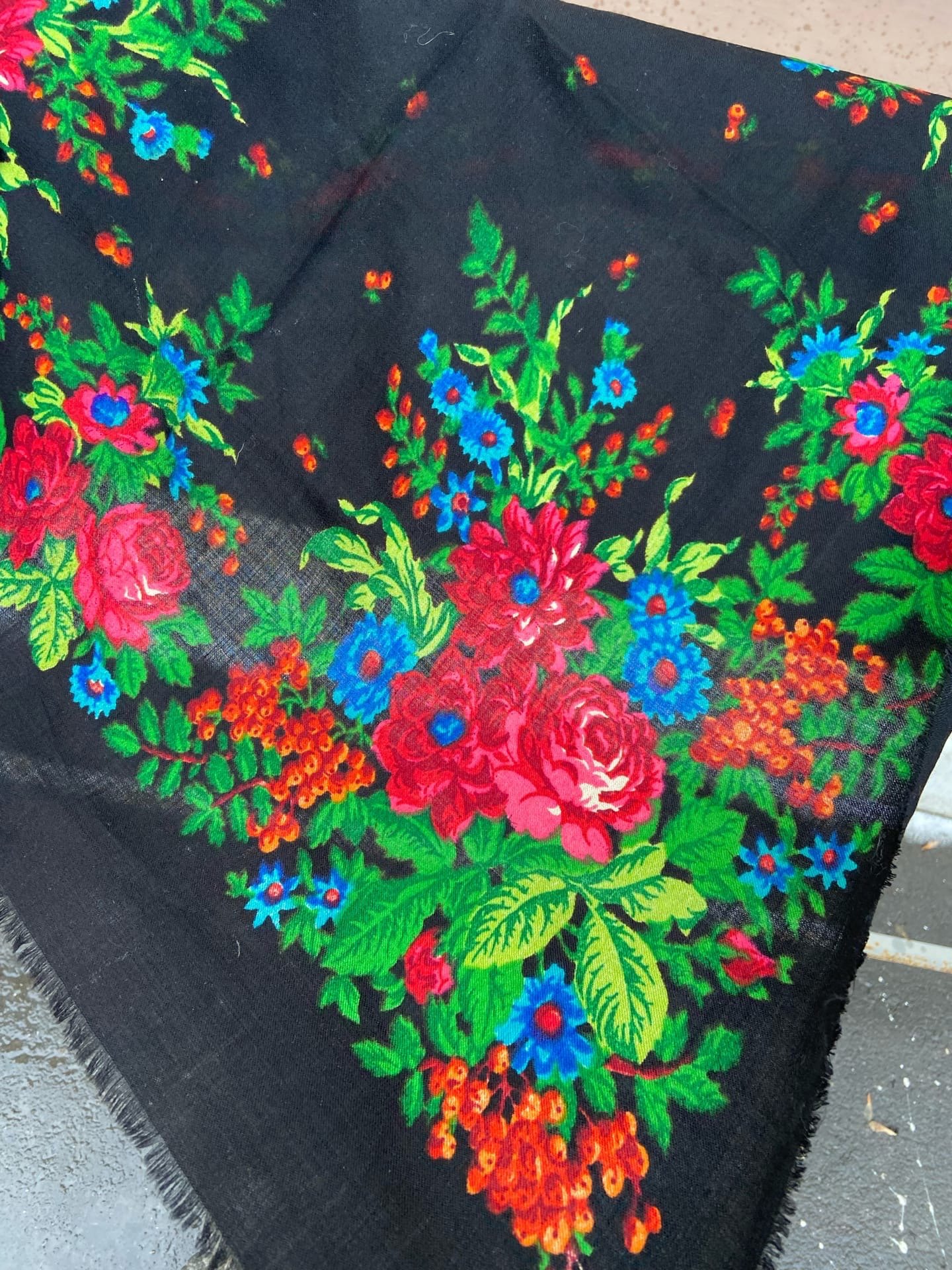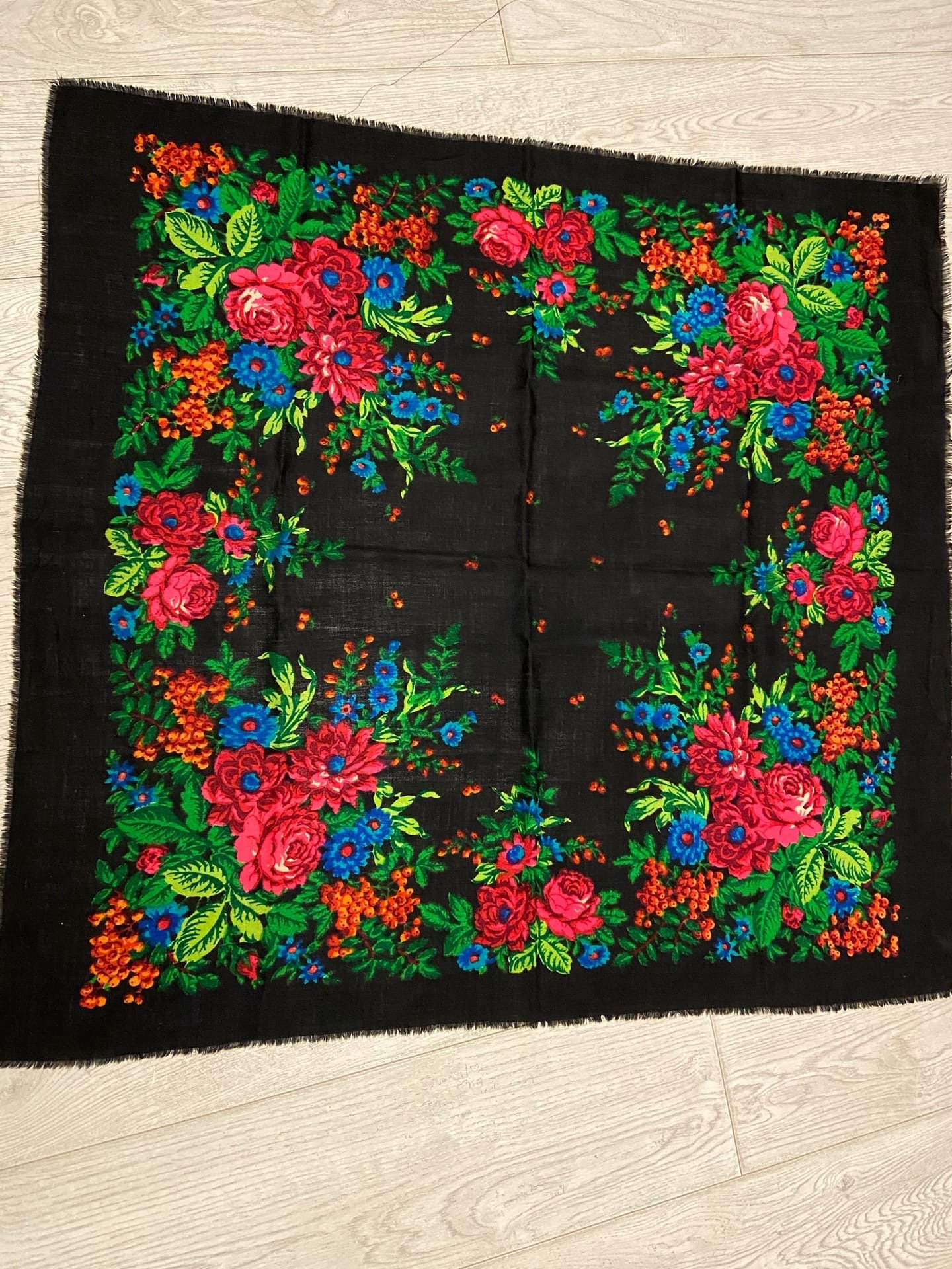Помогите, пожалуйста, опознать платочек. Долгое изучение старинок на форуме не помогло мне определить, чей же это рисунок. Были мысли и про украинские платочки, но смущает разнообразие оттенков зелени.
