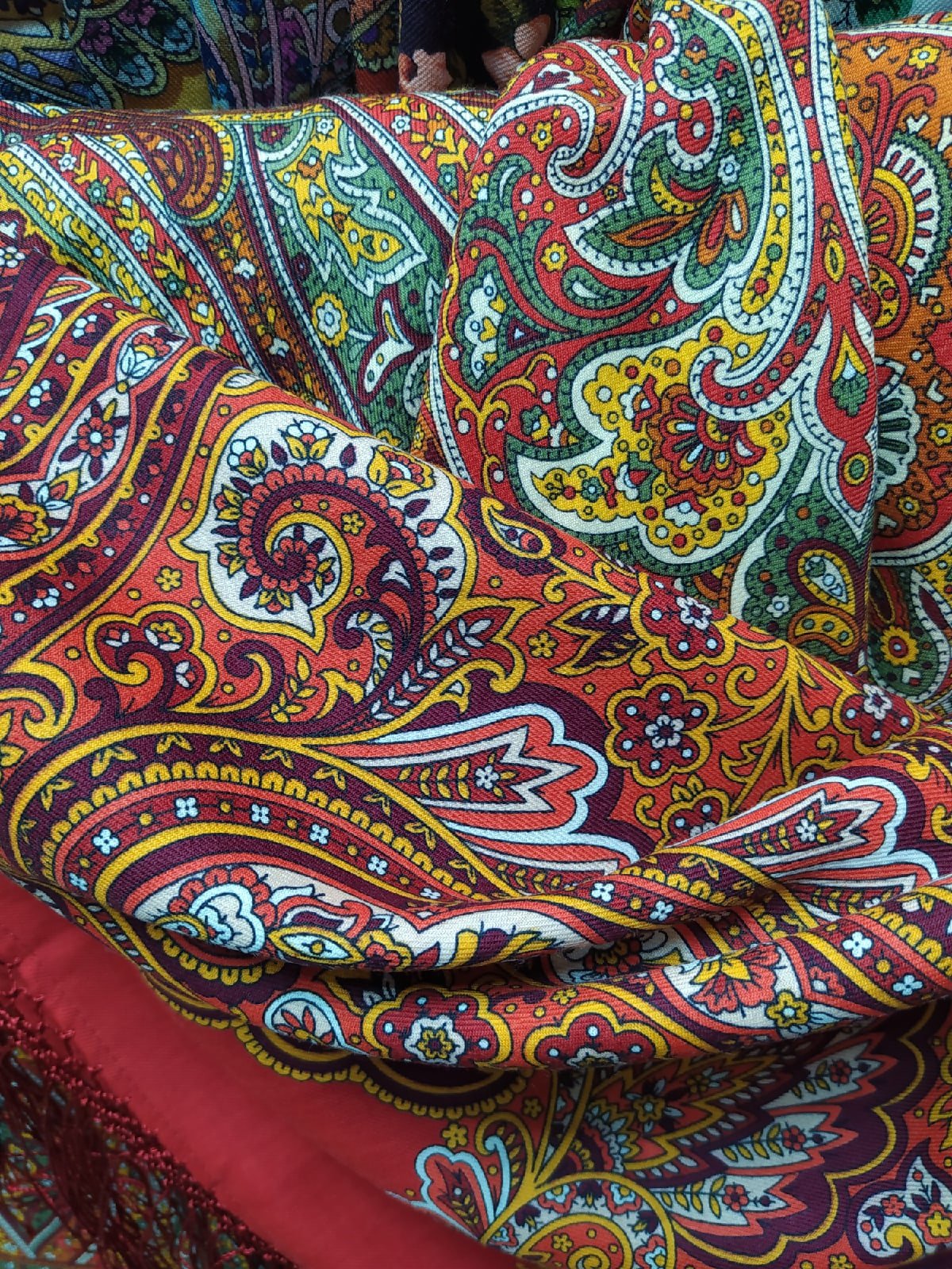 Магазинофото сравнения Таинственного вечера Натальи Белокур и Огненного танца Елены Фаворитовой, шали 148*148, обе 5 колорит.