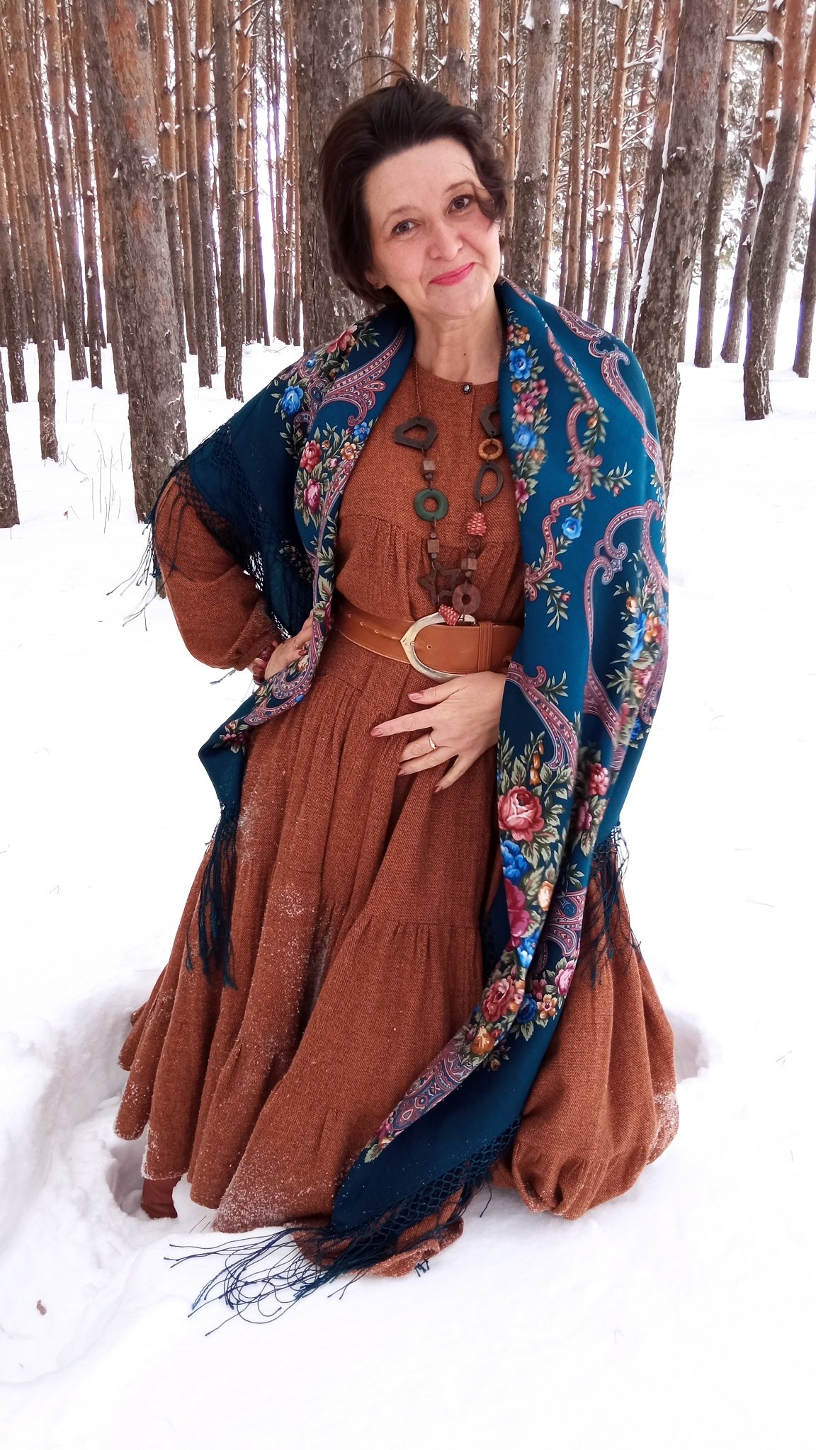 Этот платок ношу только зимой, и считаю его уникальным - он не ломает собой картинку зимнего малоцветия, но при этом очень выразительный.