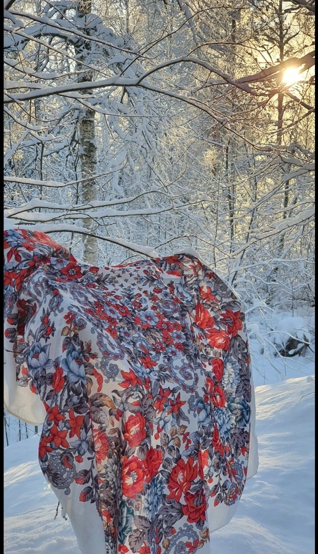Самый мой обжигающий контрастом льда и пламени платок Утомлённое солнце, 0 - в нынешних -20⁰C. Южная Карелия.