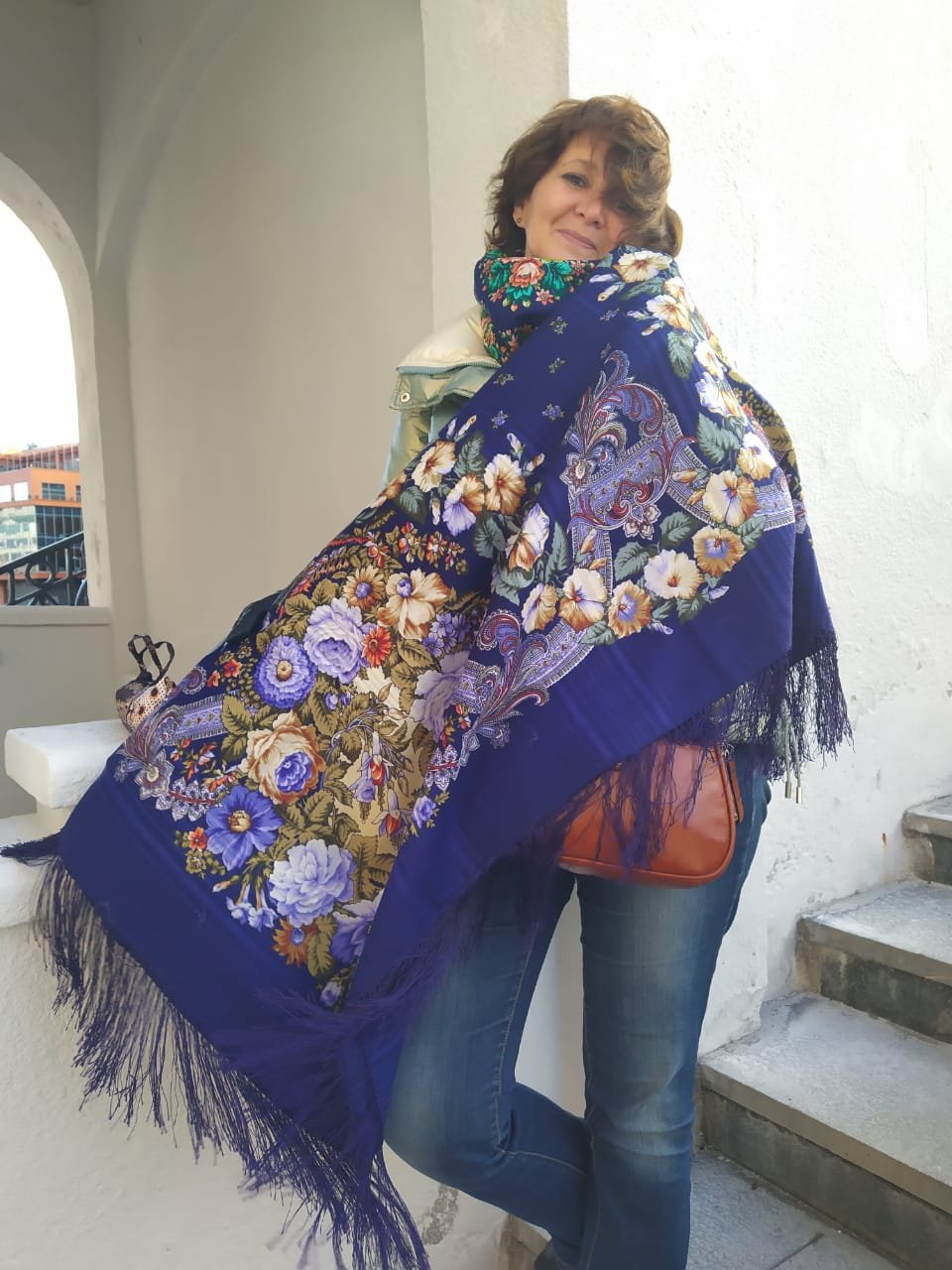 И вот я снова примерила и тот и другой синий платок... ::