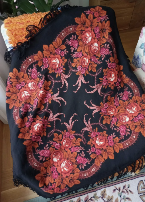 На улице вовсю зима. Все шерсть показывают, а я вот с шелком. Под Новый год случилось чудо и со мной. Я давным-давно хотела платочек Цветы для любимой в 6-м колорите. Хотя видела его чуть. Невероятный рисунок в прекраснейшем колорите. Но достать такое было немыслимым. Вот я и мечтала о нем негромко, ненастойчиво - ну, что мучиться без толку... И вдруг, как подарок под елочку, он появляется в продаже. Наша шальная девушка нашла его в подмосковном магазине в пересорте, купила, чтоб опять не потерялся. И предложила. Спасибо ей! И спасибо нашей Танечке-Ларне, которая увидела объявление, вспомнила мою мечту и написала мне. В общем, чудо случилось - желанный и недостижимый оказался у меня в руках, аж дрожащих от волнения. Так боялась ему не понравиться. Но нет - на мою любовь ответили!!! Вот хочу поделиться счастьем со всеми. И заодно пополнить архив, ведь там нет этого платочка практически.
