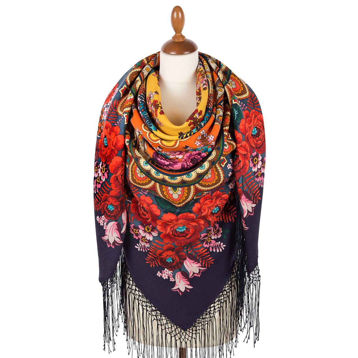 Многоцветный платок из уплотненной шерстяной ткани с шелковой бахромой,148х148см