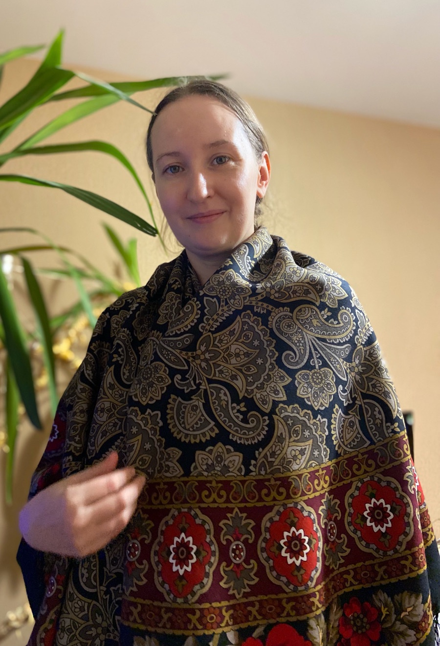- Шаль лучше смотрится в движении, чем в статике.