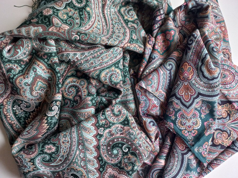 Два 89. Тёмная зелень Восходящего солнца (по недавнему размышлению о платье Сони) и яркий, но не броский Средь густых ветвей. Нравятся оба.