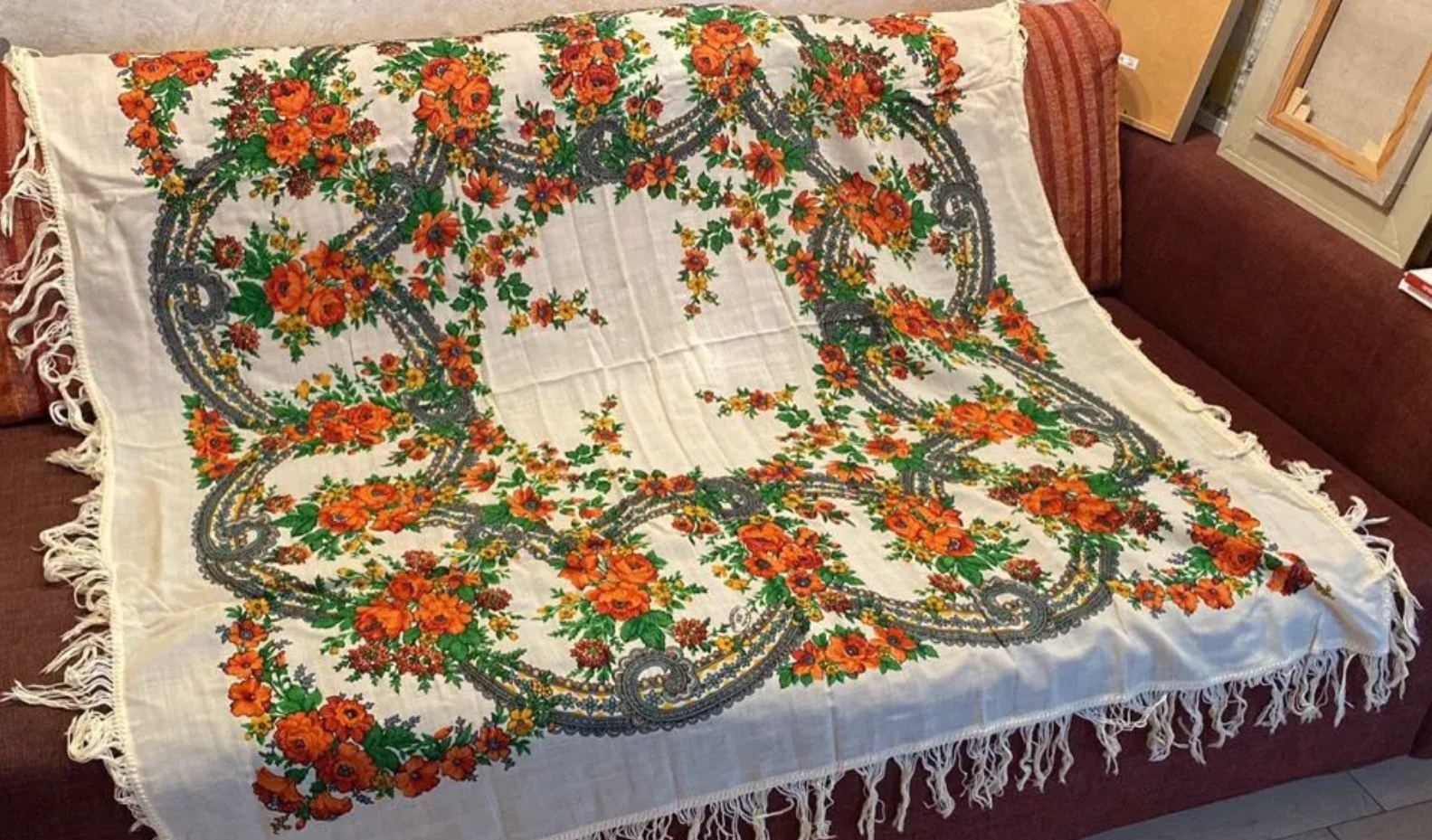 На просторах интернета нашла интересный экземпляр, информация скудная. Размер 120 см (почему-то), шерстяная бахрома. Красив и похож на ППП. Пока не нашла ответ на вопрос - наш или нет? Прошу помощи клуба.
