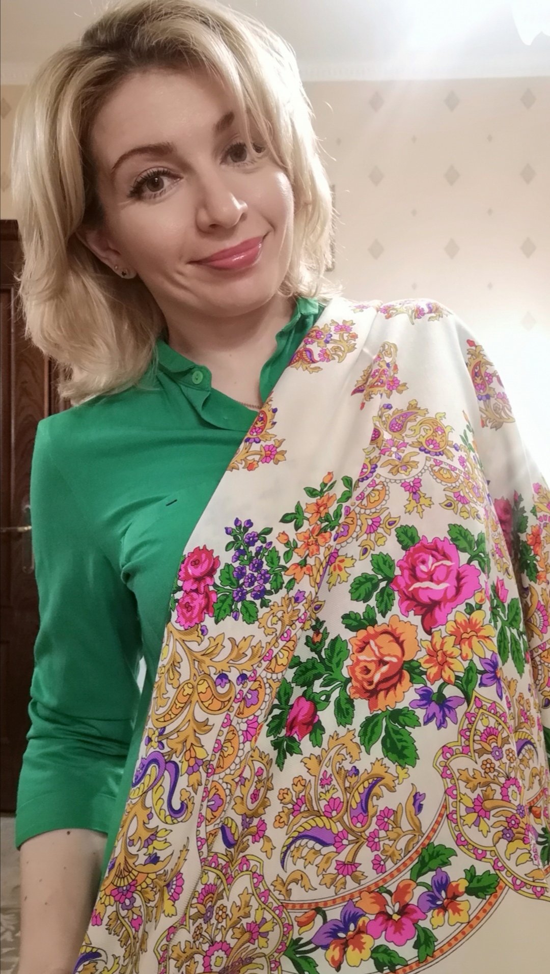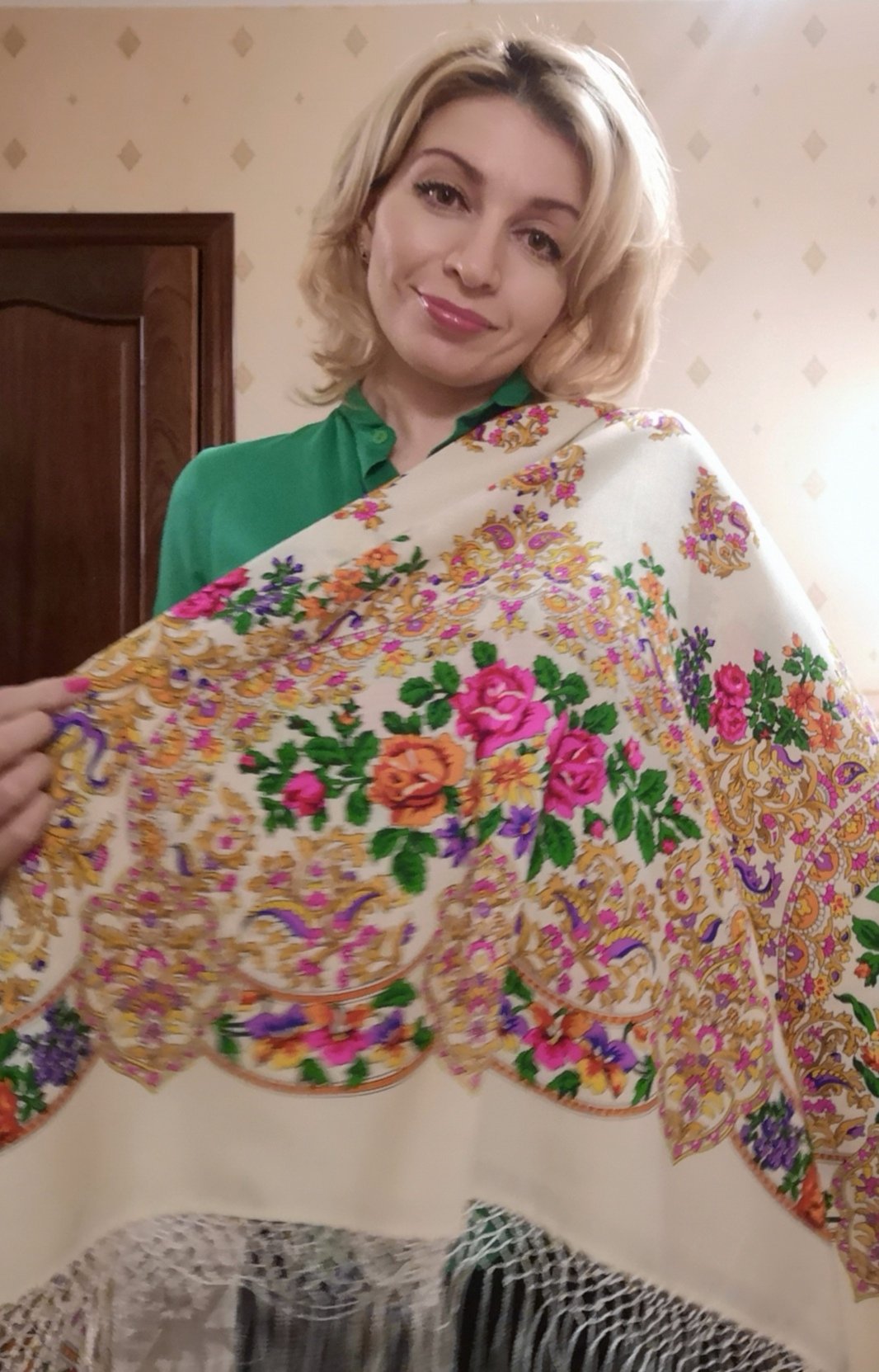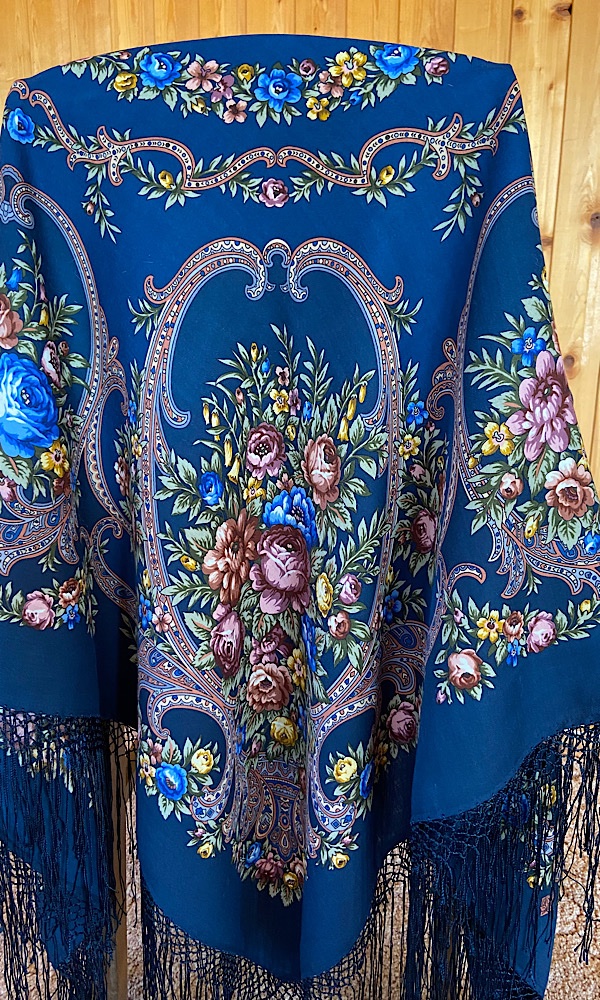 Да, тоже решила, что пока буду носить так, снять всегда успею) Я белый Княжеский не купила из-за бахромы в своё время, но ради этого рисунка смирилась и с белой бахромой)