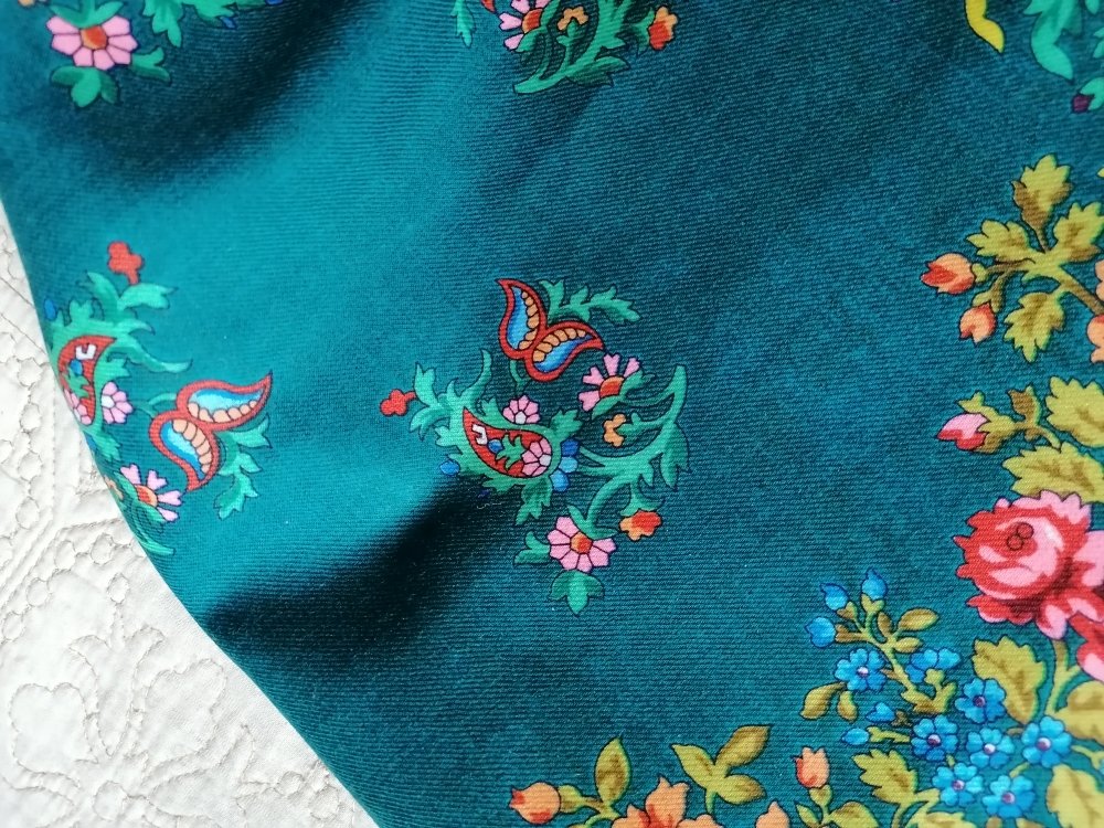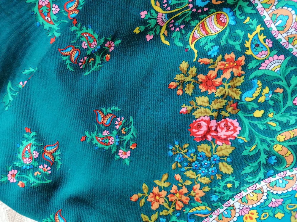Просто видела в магазине экземпляр, чей-то предзаказ, бирюзовые Медальоны с оранжевой серединой. Так вот та бирюза была откровенно зеленая, может чуть посветлее заливки на Вашем, но явно не похожа на бирюзу на кайме. А вчера в ВК девушка выложила фото бирюзовых и бирюзовых с оранжевым Медальонов - у нее нормальный бирюзовый цвет. Вот я теперь в раздумьях, что это было)) Сначала засомневалась в себе, может свет в магазине и все такое. Но вот Ваш лоскут увидела и вспомнила тот платок. Неудобно было просить чужой заказ фотографировать, а надо было бы заснять.