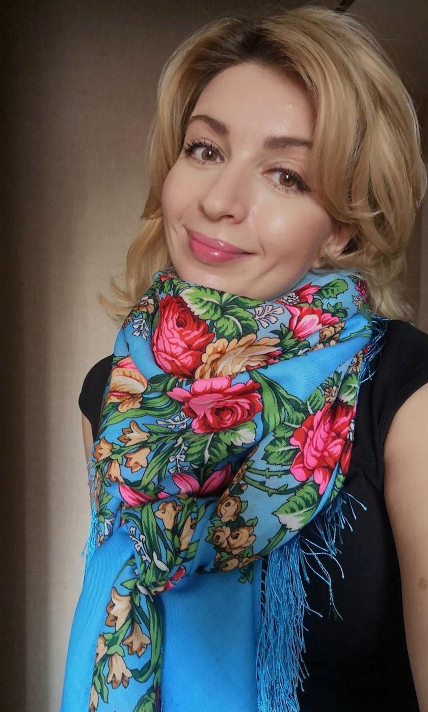 Таня Имбирь "Зрелый возраст" - исключительной красоты платок, особенный. В сочетании с вами очень торжественно и, на мой взгляд, с испанским мотивом