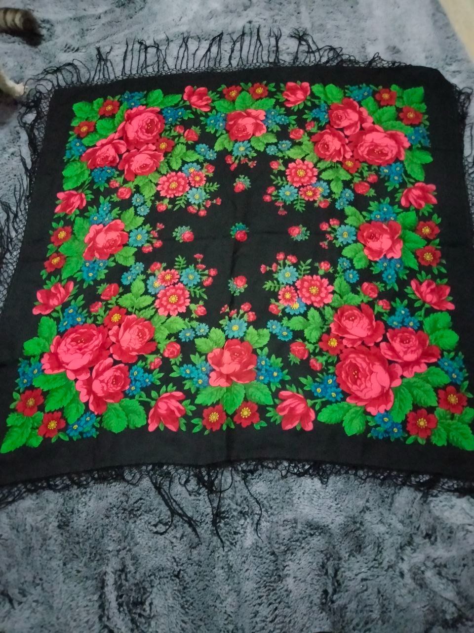 Знатоки, отзовитесь пожалуйста. Искала-искала, вроде и рисунок обычный, а найти не могу. Сказали, что оба платочка вроде метр на метр.