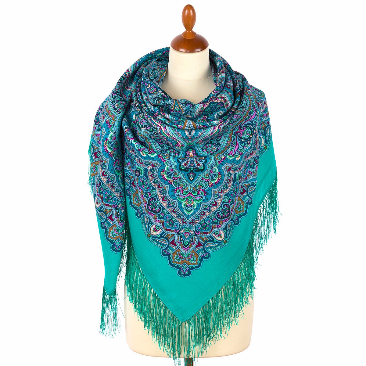 Платок шерстяной с шелковой бахромой, 125х125 см