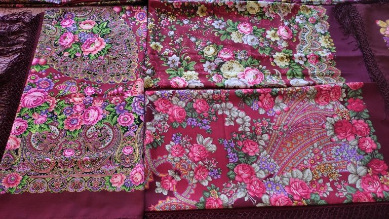 В парке Чаир (7) я получила через фею. Не смогла поймать на сайте, когда была акция, и уже было отчаялась, но есть на свете хорошие, отзывчивые люди. Шаль со светлым средником (6 колорит) я не видела ближе, чем с 2 метров в магазине Павловского Посада, и то лишь небольшой кусок. Идеи примерить её не возникло, посему мне остаётся лишь такое долгожданное сравнение с интересующей меня Желанной. Всё же я сомневаюсь из-за количества жёлтых цветов. И хочется и колется. По фотографиям их как бы и не особо заметно, но применительно к себе - не рискну покупать не примерив.