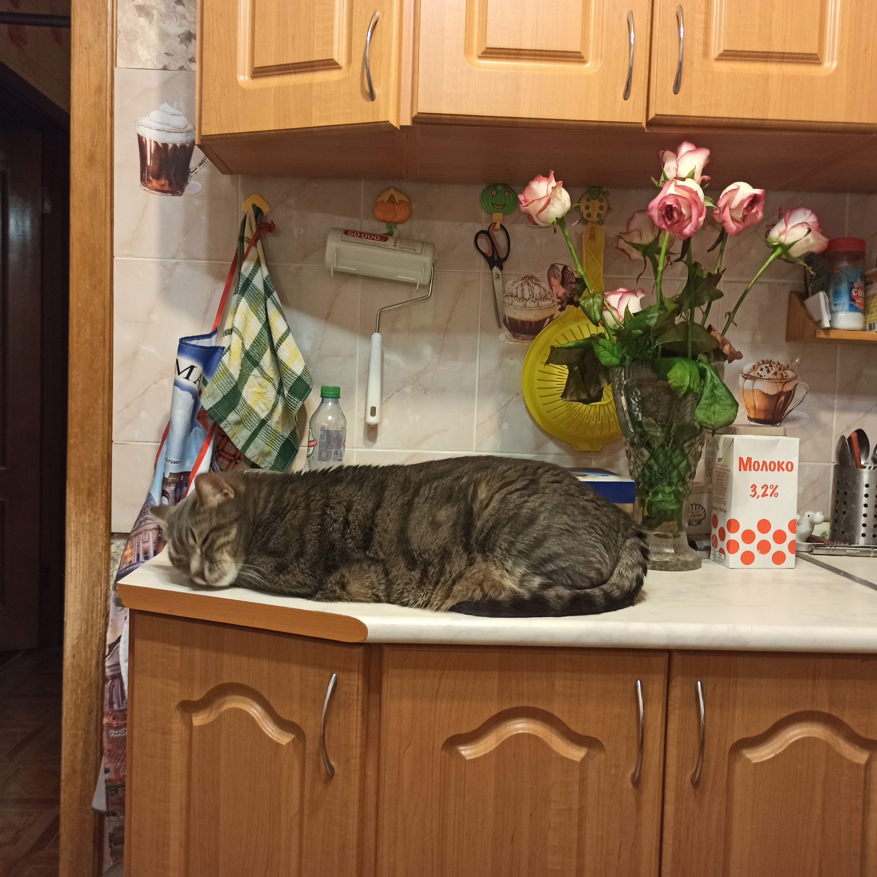 Мне с появлением дома нашего коти о цветах и вазах пришлось забыть. По осени даже напольную ,огромную вазу с хризантемами опрокинул
