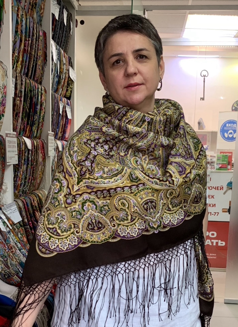 Добрый день всем!Появилось немного времени,сделала фото примерок.Фото делала по просьбе форумчанки,поэтому выбор шалей конкретный)Благодарю за помощь Елену ^%