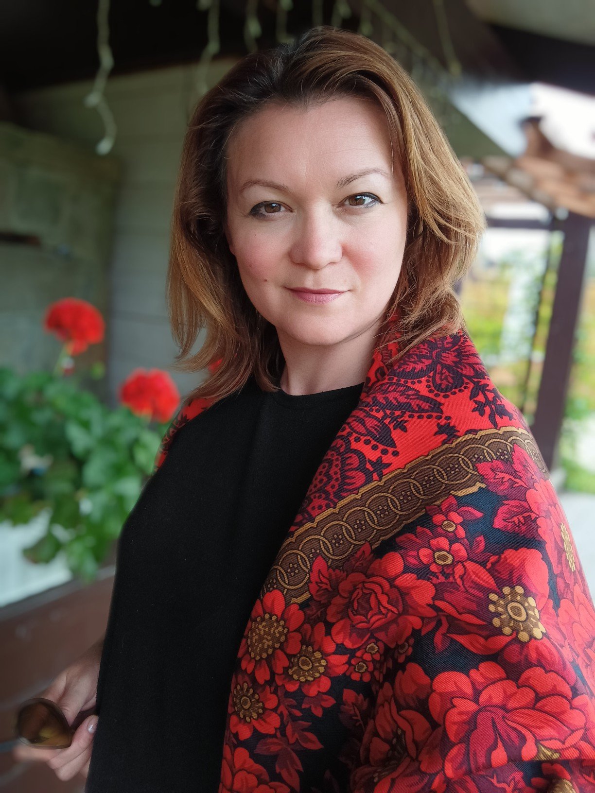 Ангелина, а вот тот алый цветок на заднем плане просится в волосы.