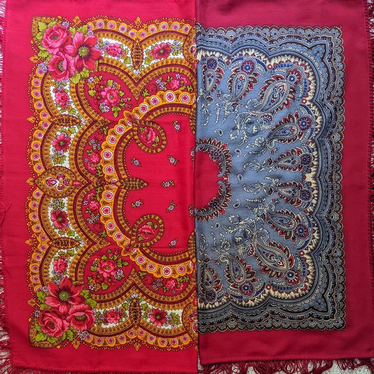 Попытка сравнить оттенки красного в сердце платочка. Различия небольшие есть.