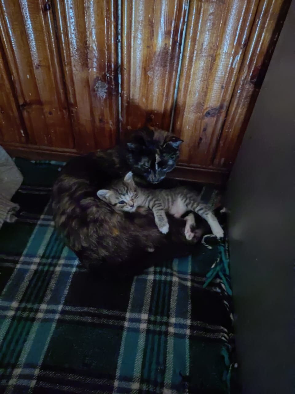 Таня, у бабушки в деревне есть кошечка Соня, похожая немного на вашу. Сын гостит там и наблюдает за становлением её материнства, так сказать. Кошка кормит и всё время вылизывает своё "чадо". Это её первый котёнок. Тоже повезло ему, оставили.