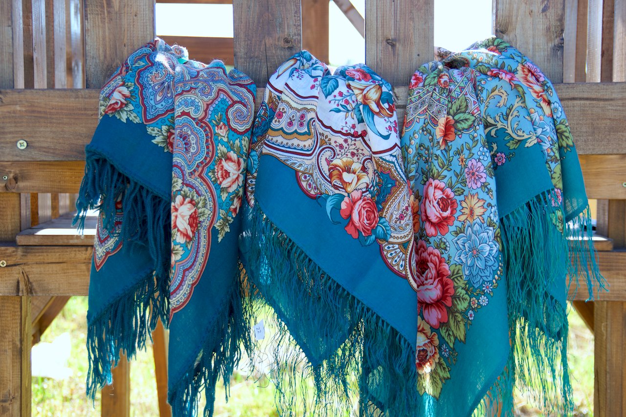Новые бирюзовые в моей коллекции- шаль Времена года.Весна и платок Троицыно утро, оба-вид 11.