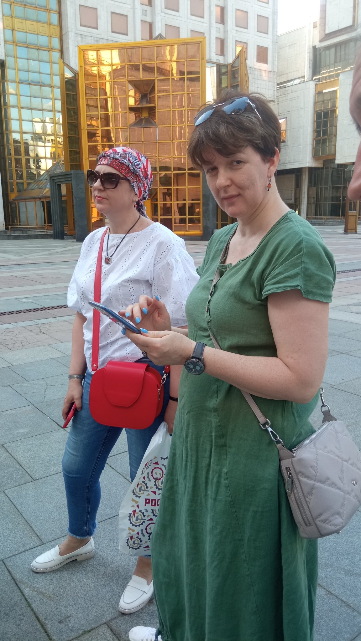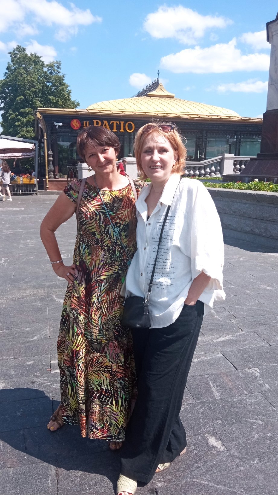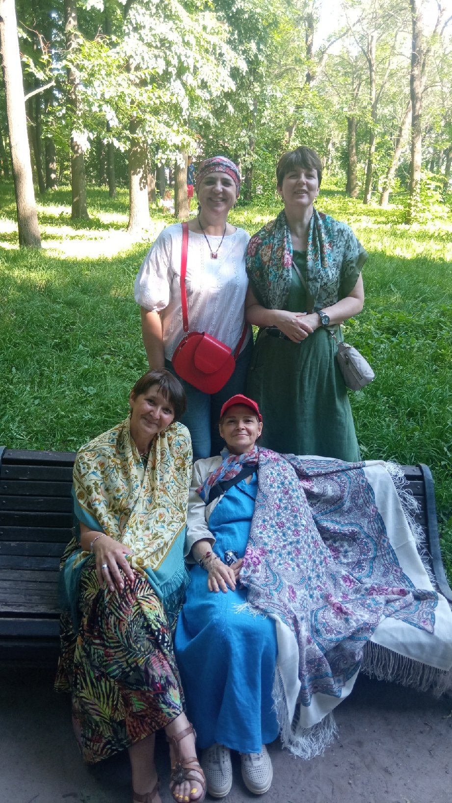 Было жарко. Мы почти без платков. Если только накинуть для фото... Одна Оксана умница!