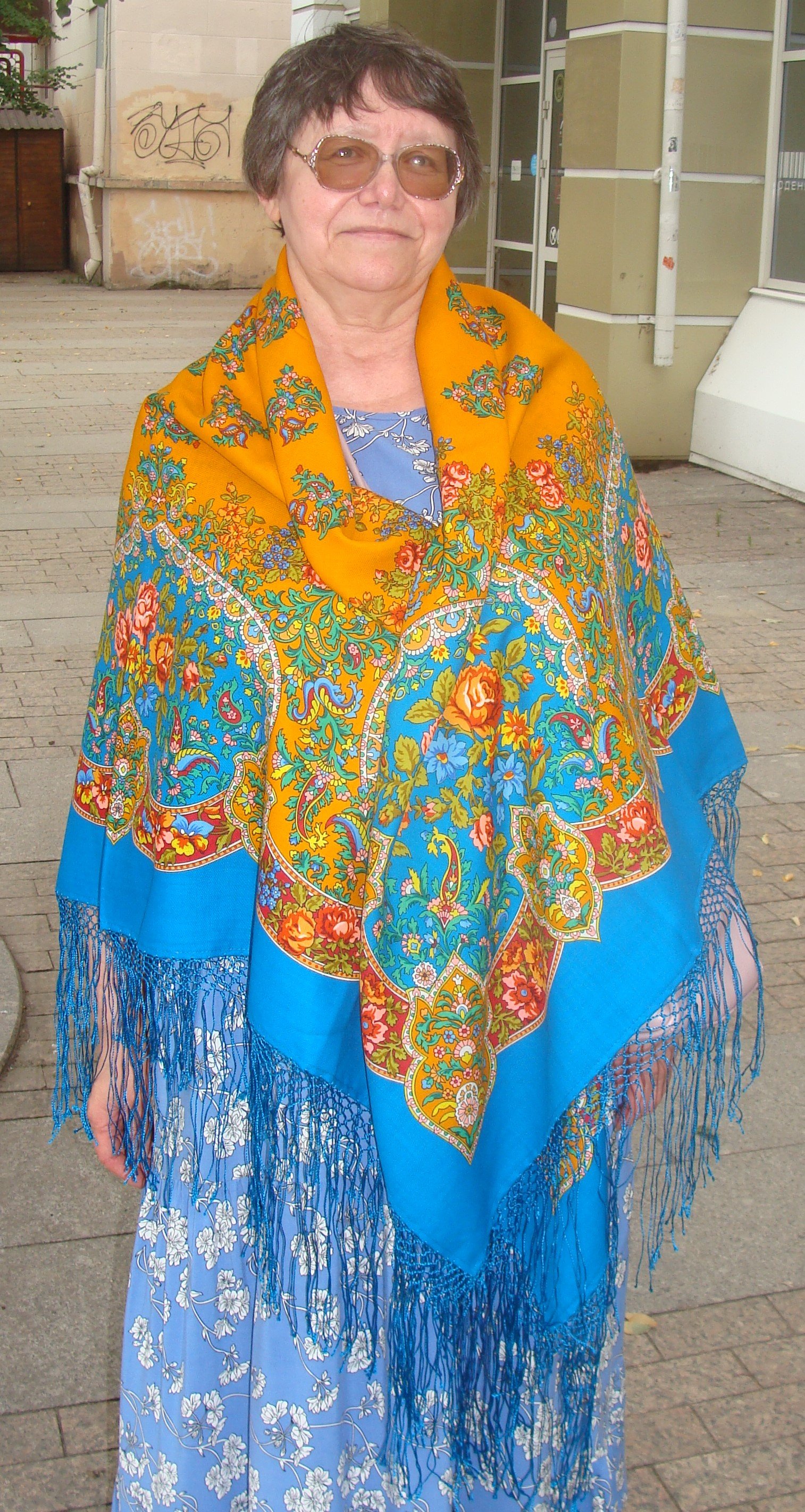 Цветущий сад-2 я взяла, чтобы сравнить новую печать со старой. В саратовском магазине новый платок мне показался более по цвету насыщенным, более горчичным. Но увы, и этой шали в Пензе не оказалось