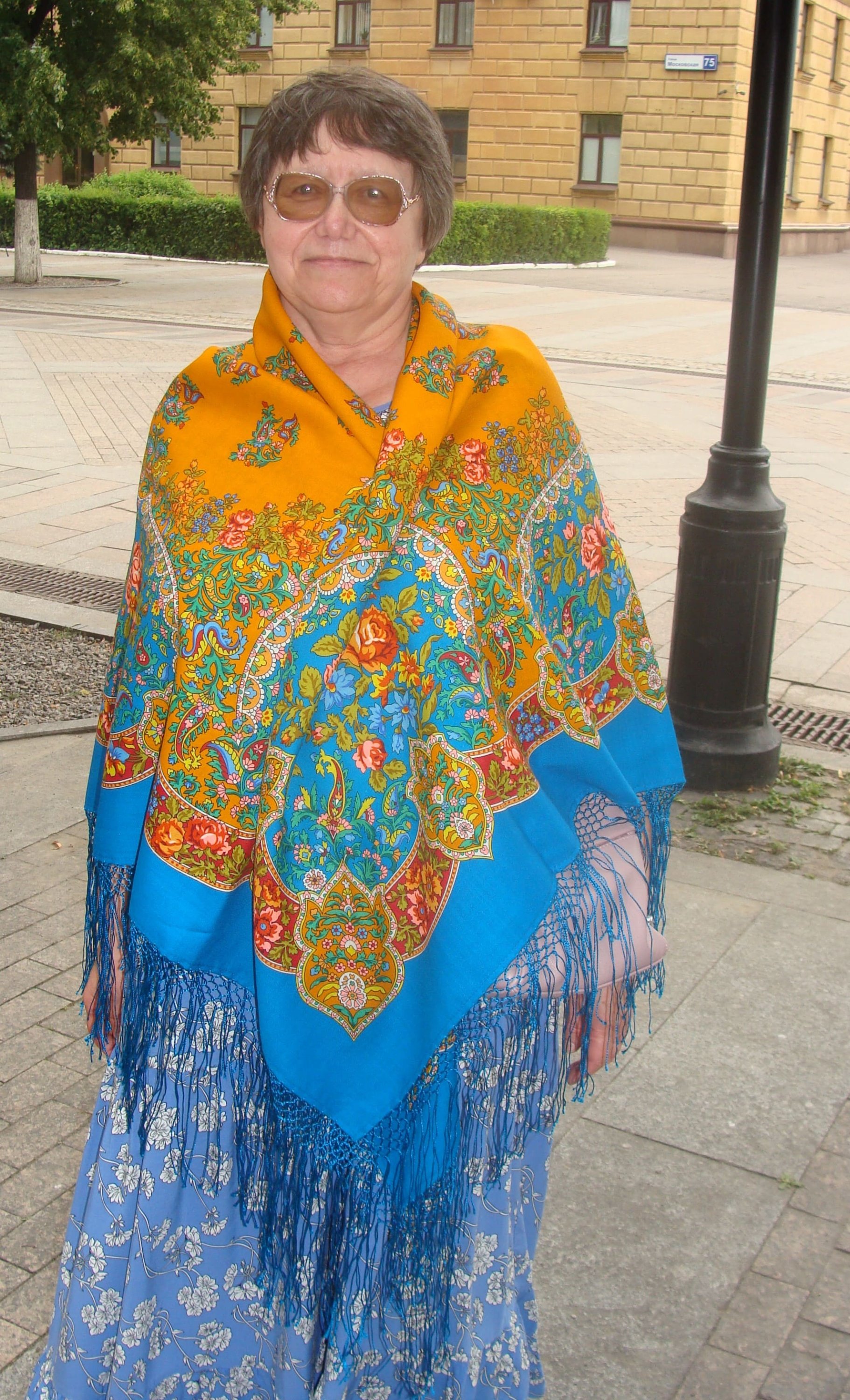 Цветущий сад-2 я взяла, чтобы сравнить новую печать со старой. В саратовском магазине новый платок мне показался более по цвету насыщенным, более горчичным. Но увы, и этой шали в Пензе не оказалось