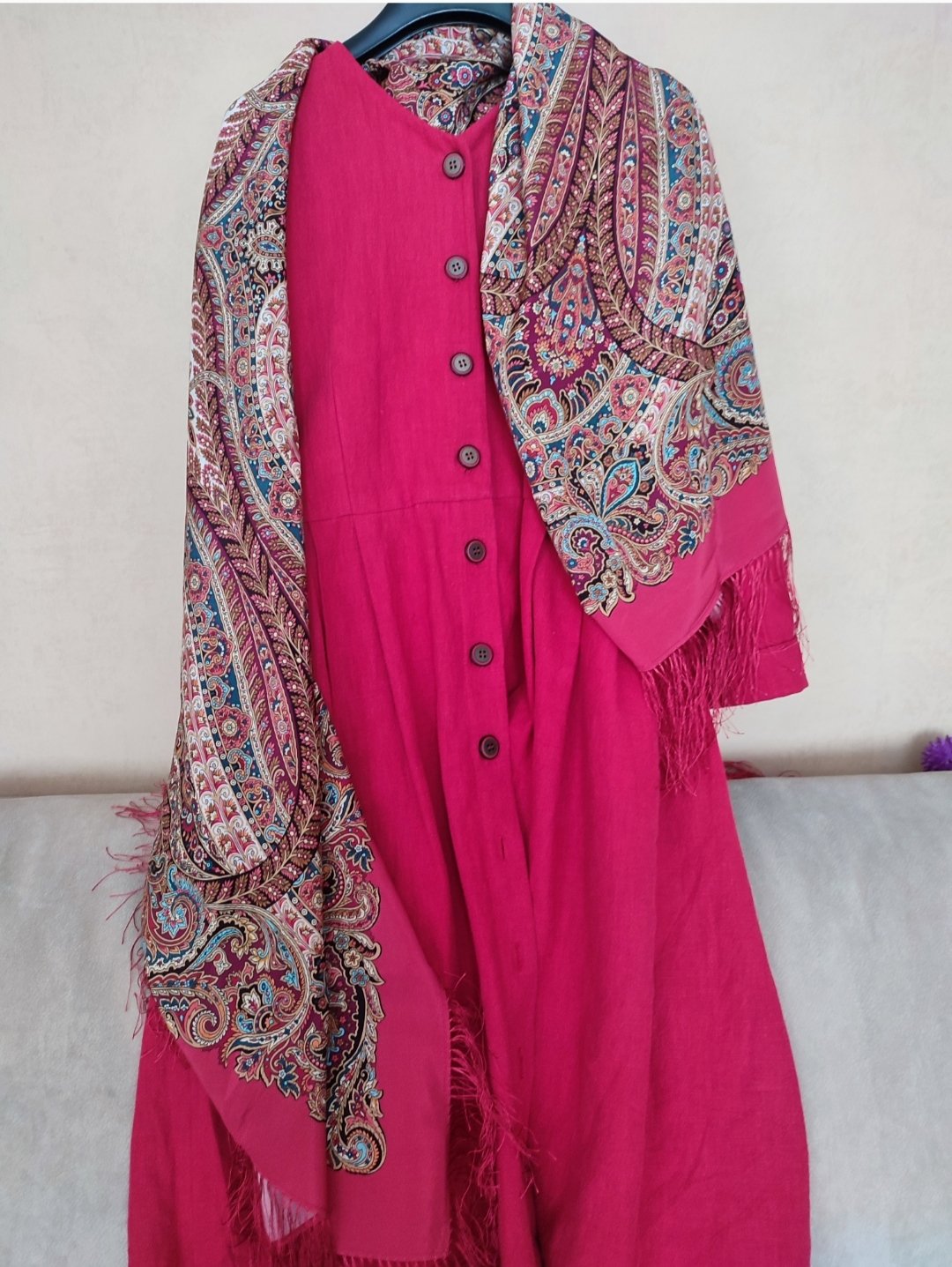 Получила с сайта шёлковую шаль Великолепный век вид 3, и обомлела! Совсем не такой я её видела в нашем магазине! Не поленились, поехала сегодня сравнить. Шали сильно отличаются. Розовая кайма и бледная печать, это ноябрь 2019 год. Моя, яркая - февраль 2022 года