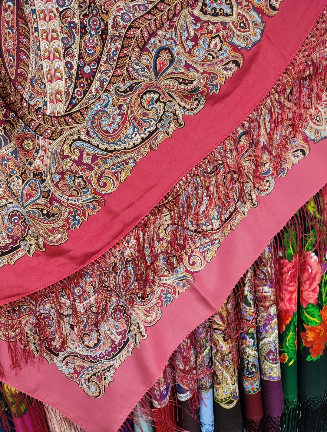 Получила с сайта шёлковую шаль Великолепный век вид 3, и обомлела! Совсем не такой я её видела в нашем магазине! Не поленились, поехала сегодня сравнить. Шали сильно отличаются. Розовая кайма и бледная печать, это ноябрь 2019 год. Моя, яркая - февраль 2022 года