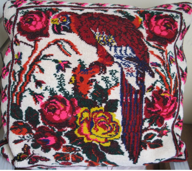 Я хочу показать здесь подушку, которую делала моя свекровь. Это ковровая ворсовая техника. Свекровь уже в лучшем из миров, мы с ней почти не понимали друг друга, она не знала русского, я лезгинского, но теплое отношение к себе чувствовала. Вот теперь на память остались у меня две такие подушки.